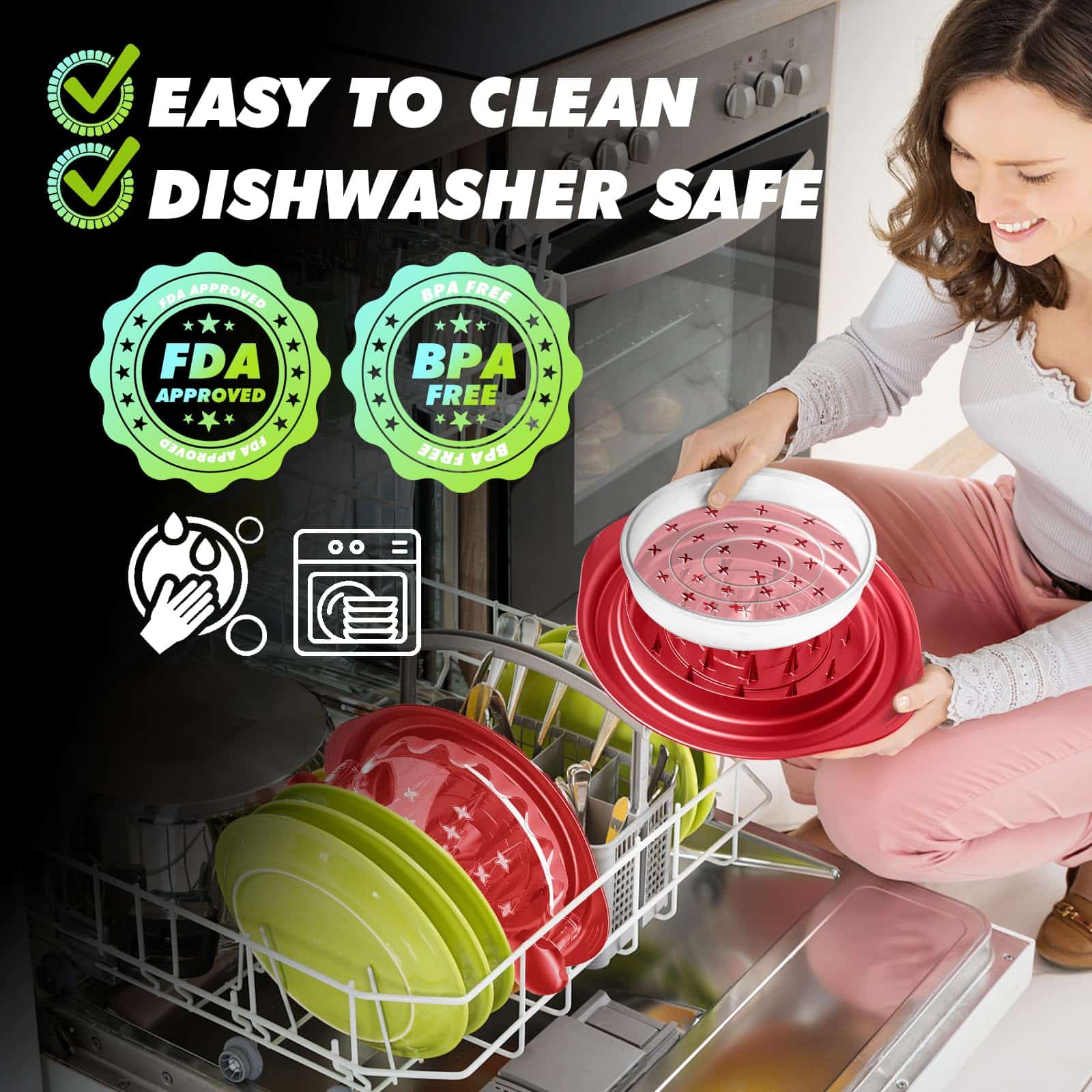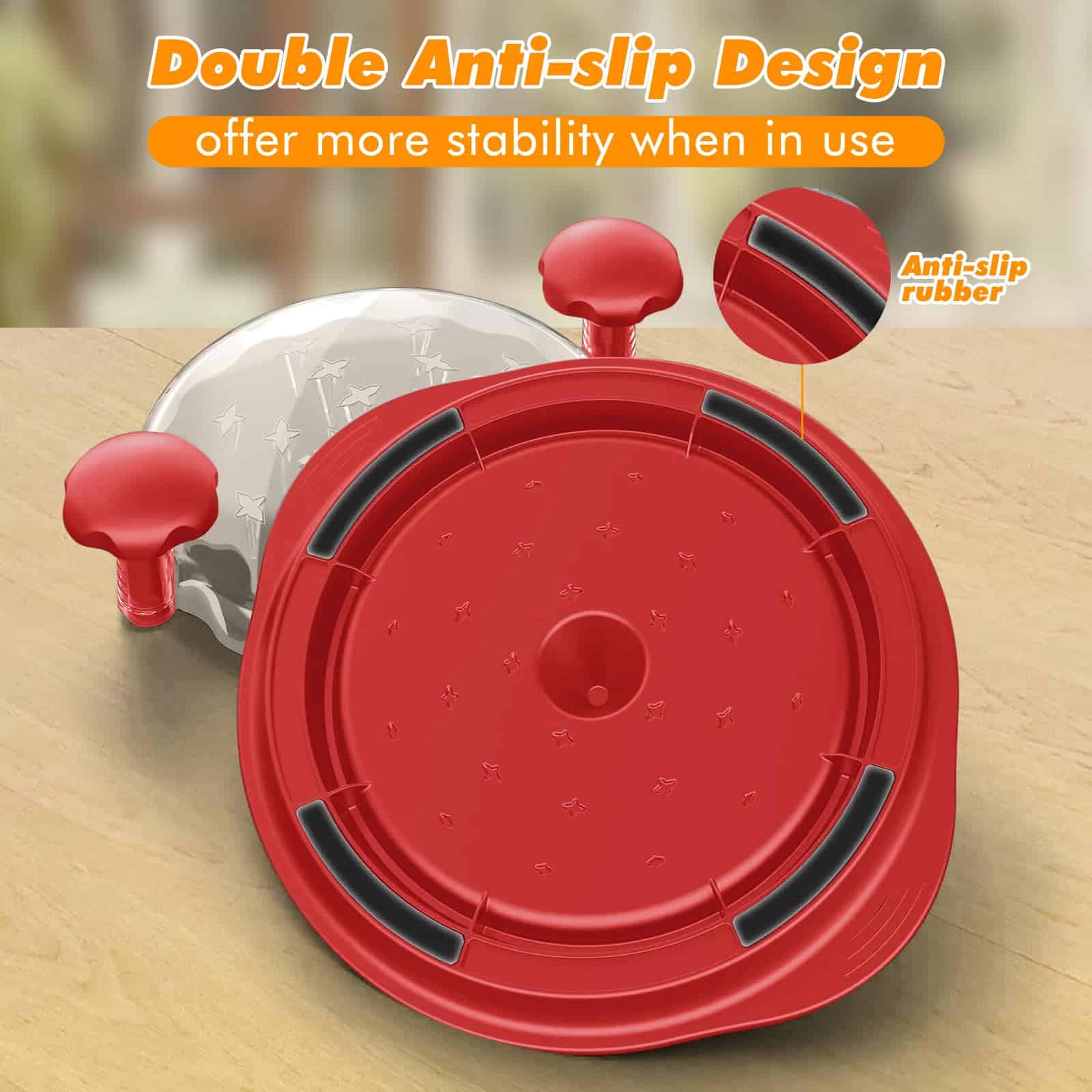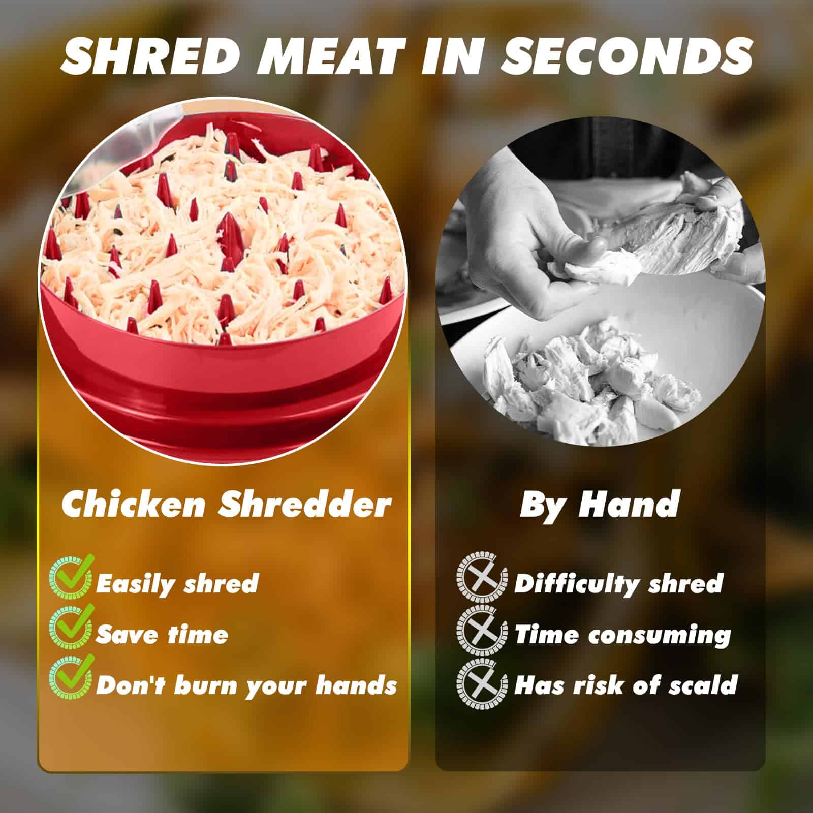 2. DISEÑO ANTIDESLIZANTE CON MÁS FIRMEZA – Hemos mejorado la estabilidad agregando un mejor agarre y tiras de goma a la base del desmenuzador de pollo. Ya no tendrá que preocuparse por que la herramienta de desmenuzado de pollo se deslice de los mostradores de la cocina. Con asas ergonómicas grandes, una base antideslizante y un recipiente antideslizante, nuestro desmenuzador de carne de pollo premium garantiza un desmenuzado seguro y sin complicaciones.