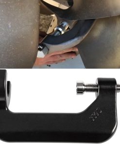 3. Avance el perno del desmontador en sentido horario (apriete) con una llave inglesa. No apriete demasiado. El propósito de apretar no es liberar la hélice, sino aplicar suficiente presión en el extremo del eje y el extremo delantero del cubo de la hélice para transferir el impacto, durante el impacto, con un martillo. NO USE UNA LLAVE DE IMPACTO.