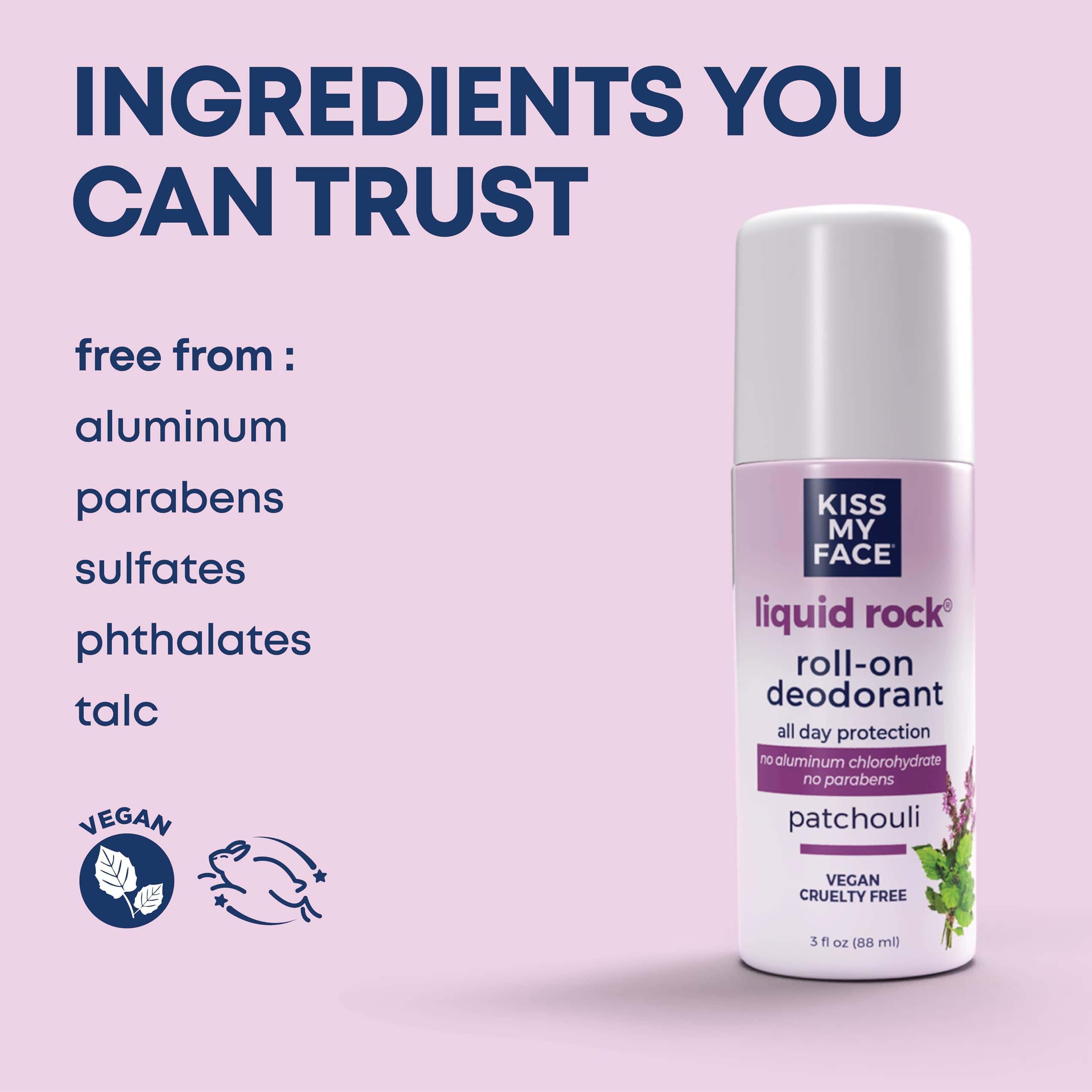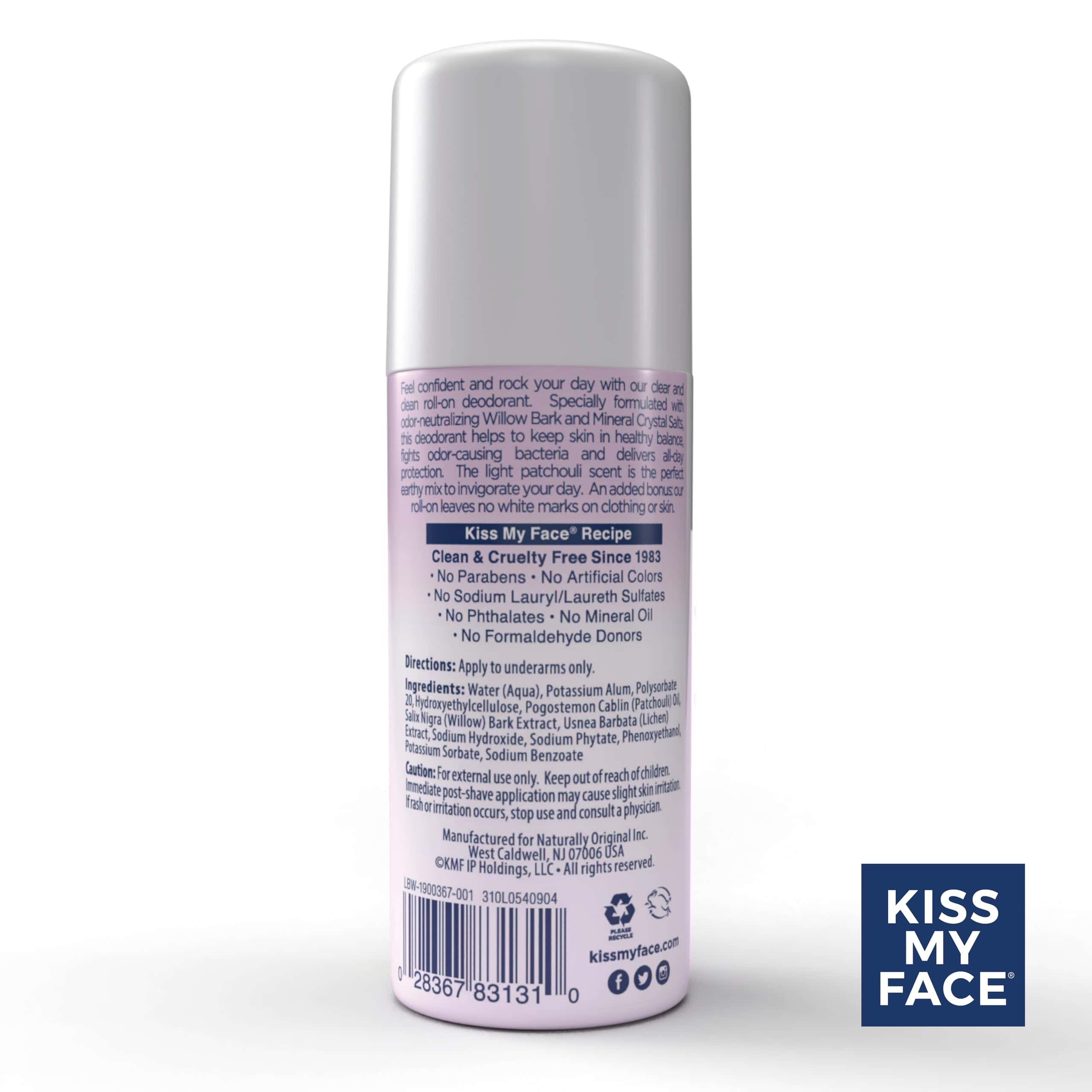 Kiss My Face Liquid Rock Aluminum Chlorohydrate Free Roll-on Deodorant, Patchouli, 3 oz., Paquete de 6