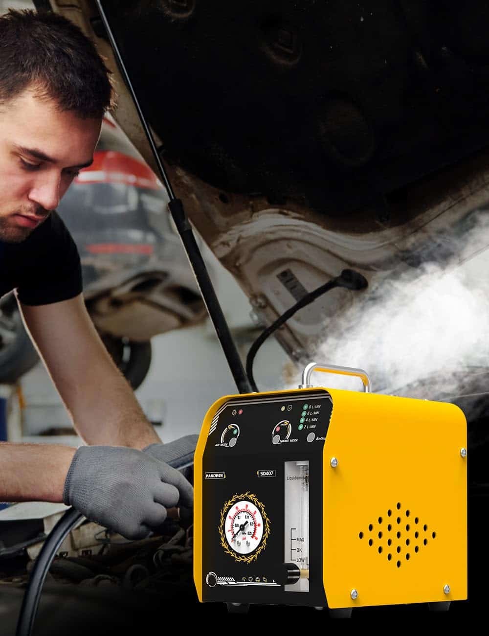 El probador de humo de vacío automotriz es una herramienta diseñada profesionalmente para la detección de fugas en tuberías. Ya sea para sistemas de escape automotrices, sistemas de combustible u otros sistemas de tuberías, esta máquina de humo identifica rápidamente y efectivamente incluso las fugas más pequeñas.
