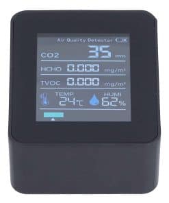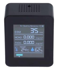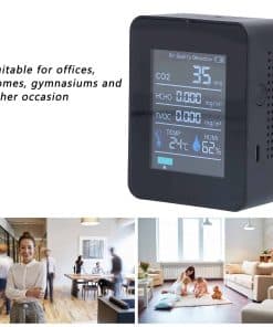 Especificación Tipo de Artículo: Monitor de Calidad del Aire Material: ABS Voltaje: 5V Corriente: 500mA Batería: Batería de Litio Polímero 18650 1800mAh (Incluida) Precisión de la Medición de Dióxido de Carbono: 1ppm Rango de Medición de Dióxido de Carbono: 400-6000 50 5% PPM Rango de Medición de TVOC: 0-2.0mg/m Rango de Medición de HCHO: 0-0.6mg/m Rango de Medición de Temperatura: -10-50 Precisión de Medición de Temperatura: 2 Tamaño del Producto: Aprox. 8.9 x 7 x 3.5cm / 3.5 x 2.75 x 1.37in Rango de Medición de Humedad: 0%-99%RH Precisión de Medición de Humedad: 3%RH Tamaño del Producto: Aprox. 9 x 7 x 3.5cm / 3.54 x 2.75 x 1.37in Peso: Aprox. 207g / 7.3oz Cómo Usar Presione prolongadamente el interruptor durante tres segundos para encenderlo Lista de Paquetes 1 x Monitor de Calidad del Aire 1 x Cable USB 1 x Manual de Usuario Nota VideoSubtítulos Preguntas Frecuentes P: Los datos medidos del producto no son precisos, ¿qué debo hacer? R: Este es un sensor semiconductor. Antes de usarlo, debes encenderlo y dejarlo en un área bien ventilada con un aire ambiente de 400PPM durante 20-30 minutos. Luego colócalo en la habitación para la detección. Este sensor está diseñado para detectar dióxido de carbono exhalado por humanos y no puede detectar con precisión el gas de dióxido de carbono puro. Además, también puede detectar gases irritantes como alcohol, tolueno, perfume y olores desagradables. Asegúrate de mantenerlo alejado de estos gases.