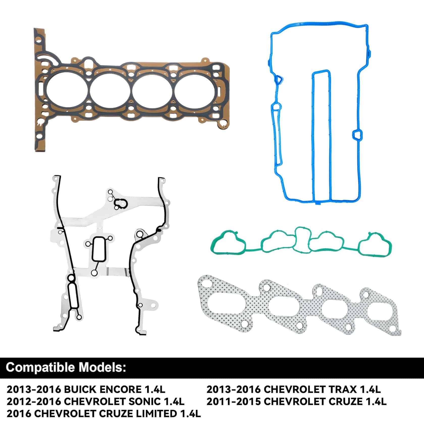 2. Modelos de Empaques de Culata compatibles con Buick Encore 1.4L 2013-2016, Para Chevy Trax 1.4L 2013-2016, Para Chevrolet Chevy Sonic 1.4L 2012-2016, Para Chevrolet Cruze 1.4L 2011-2015, Para Chevrolet Cruze Limited 1.4L 2016.