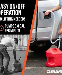 La Bomba de Transferencia de Combustible Automática de Deway es el dispositivo de referencia para cualquiera que necesite una transferencia de combustible o líquidos libre de estrés. Úsala para llenar o vaciar tu generador de emergencia, cortacésped, equipo de patio y jardín, vehículos todo terreno y ATV, maquinaria de construcción, autos, motos, RVs, equipo de limpieza y mucho más. ¡Haz que la transferencia de líquidos sea más fácil y conveniente con esta bomba de alta calidad!