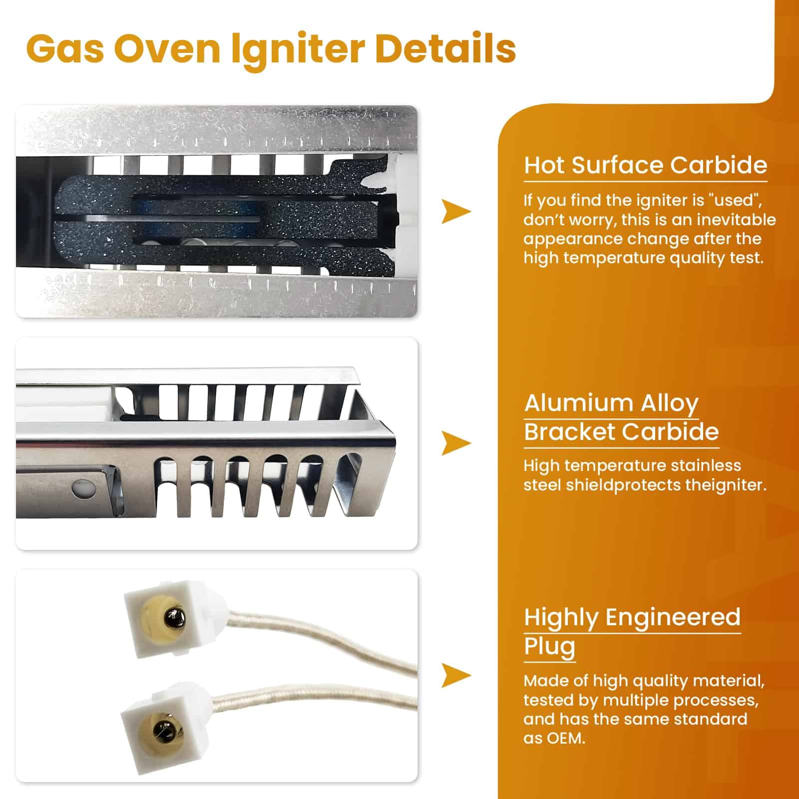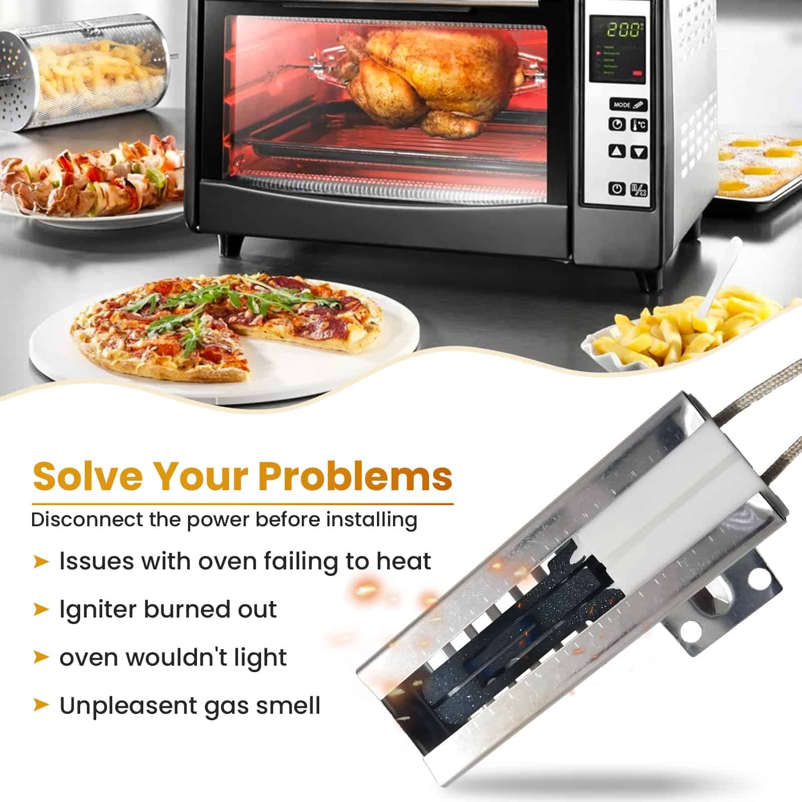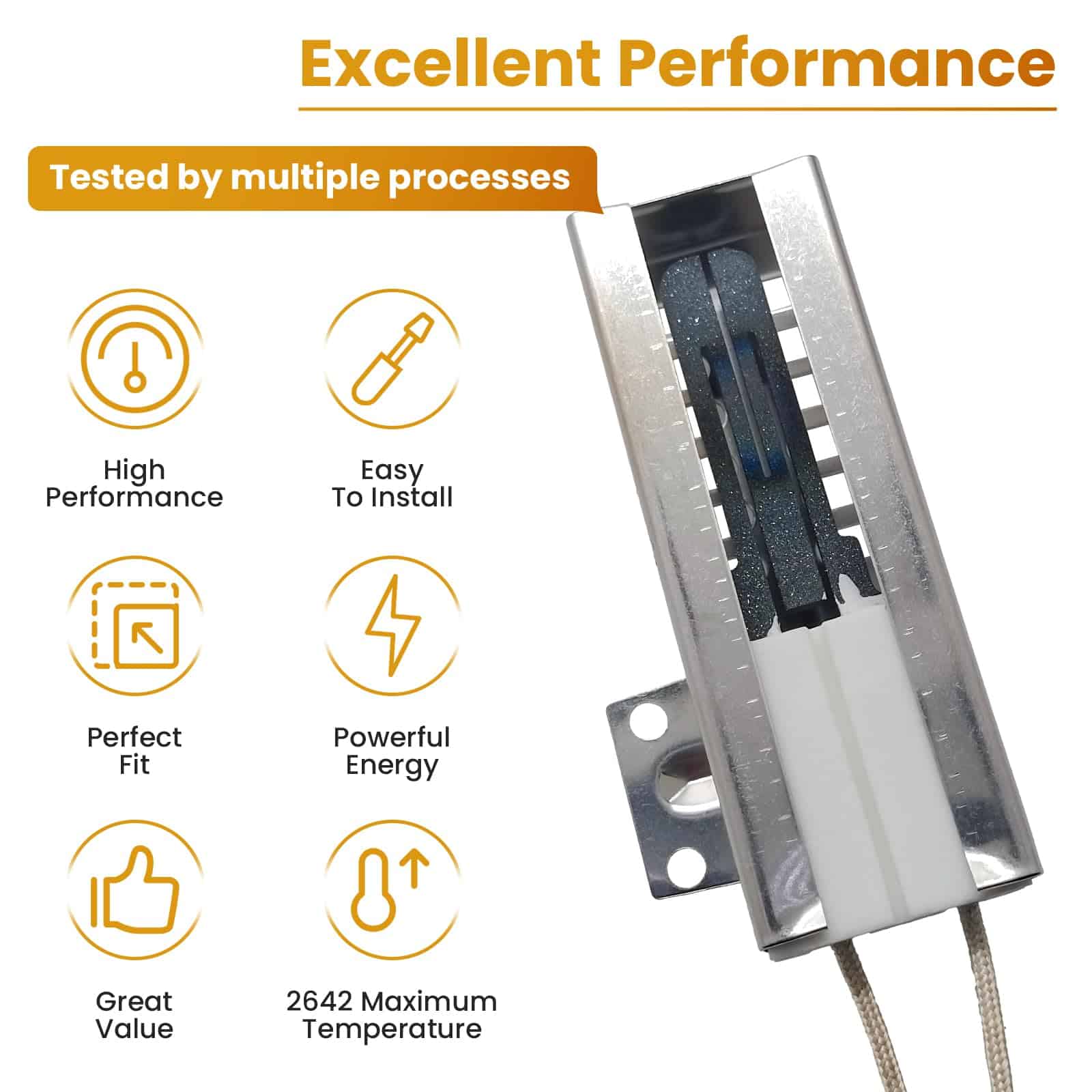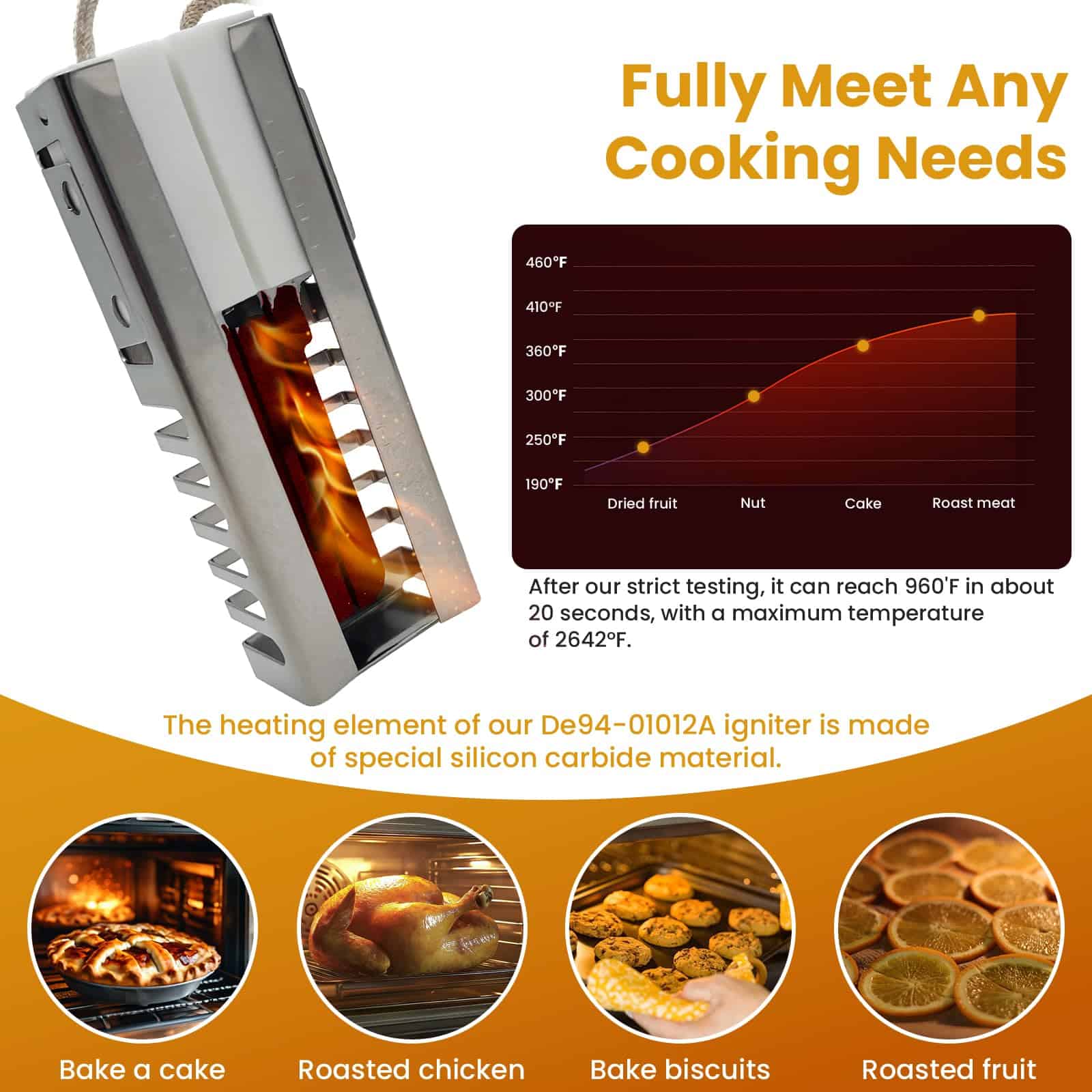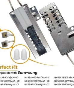 DG9401012A Encendedor de Horno de Gas Para NX58H9500WS NX58K9850SS NX58M6630SS NX58K9500WG NX58H9950WS NX58K7850SS AP5967723 Compatible con Estufa Horno Samsung. Este encendedor de horno de gas DG94-01012A es compatible con varios modelos de estufas y hornos Samsung, como NX58H9500WS, NX58K9850SS, NX58M6630SS, NX58K9500WG, NX58H9950WS, NX58K7850SS, y más. Tiene una calificación eléctrica de 3.3 a 3.8 AMP a 120V AC y se instala fácilmente con conexión. El encendedor ha pasado pruebas de resistencia al envejecimiento para garantizar su durabilidad y resistencia al calor, lo que prolonga la vida útil de su estufa u horno. Si durante la instalación hay una falta de coincidencia entre los conectores de los cables, se recomienda cortar los conectores y empalmar los cables con tuercas de porcelana. Antes de la instalación, es importante desconectar los electrodomésticos de las fuentes de energía y gas para evitar accidentes. Este encendedor de horno de gas DG94-01012A es la solución perfecta para problemas comunes como el encendedor quemado, calentamiento anormal del horno, olor desagradable a gas, o la incapacidad del horno de calentar correctamente. Mantenga su estufa u horno Samsung en funcionamiento óptimo con este repuesto de calidad.