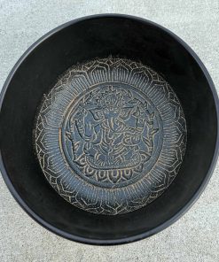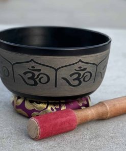 Juego de cuenco de canto Om Ganesh Tibetano de Meditación de Grado Pesado y Grande. Este es un cuenco absolutamente magnífico con un gran sonido de larga duración y se toca fácilmente. Om hindú grabado a mano en la cara, Ganesh grabado y en relieve dentro del cuenco de canto. Además de su uso tradicional para la meditación, los cuencos de canto tibetanos se utilizan para la relajación profunda, reducción del estrés, sanación holística, Reiki, equilibrio de chakras y música del mundo. Muchas personas encuentran que la rica combinación de armónicos que producen las campanas tiene un efecto directo en sus chakras.
