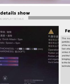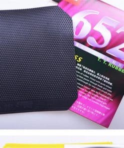 Goma de tenis de mesa/pingpong DHS 652 pips-out con esponja/ goma sobre pimples out. El número de partículas de goma mejora la fricción, junto con una esponja de ataque rápido, la bola golpea la tabla rápidamente y gira, brindando una nueva técnica de ataque rápido de corto alcance.
