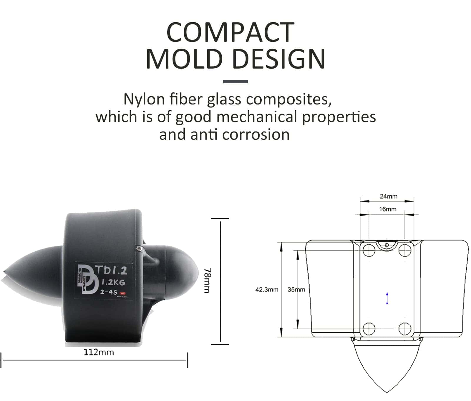 Parámetro Voltaje de entrada 12V—-14.8V Corriente 13A Tamaño del motor 28MM 38MM Tamaño del propulsor 78 112MM Motor KV 350KV Empuje hacia adelante 1200g—-2500g Corriente nominal 5A—13A Potencia 60W—312W Tamaño del empuje Diámetro 78mm, longitud 112mm, cable de señal 500mm, cubierta de moldeo por inyección de nailon anticorrosiva Componente incluye cubierta de desviación y tapa, hélice (CW o CCW), ESC, motor, cable