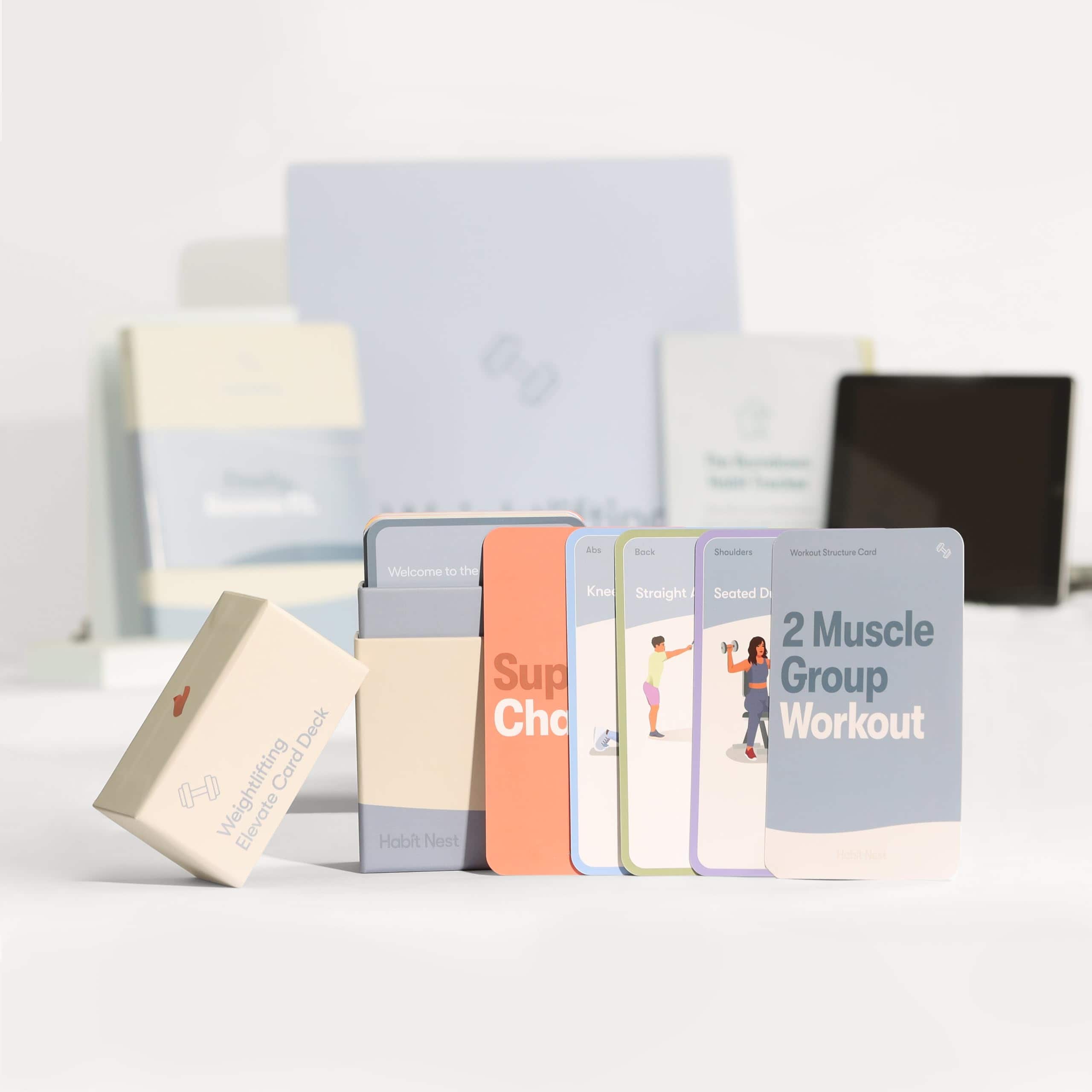 2. Sistema Completo de Aptitud: Incluye Diario de Transformación (Úsalo para construir tu hábito) y Mazo de Tarjetas Elevate (Úsalo para mejorar y mantener tu hábito).