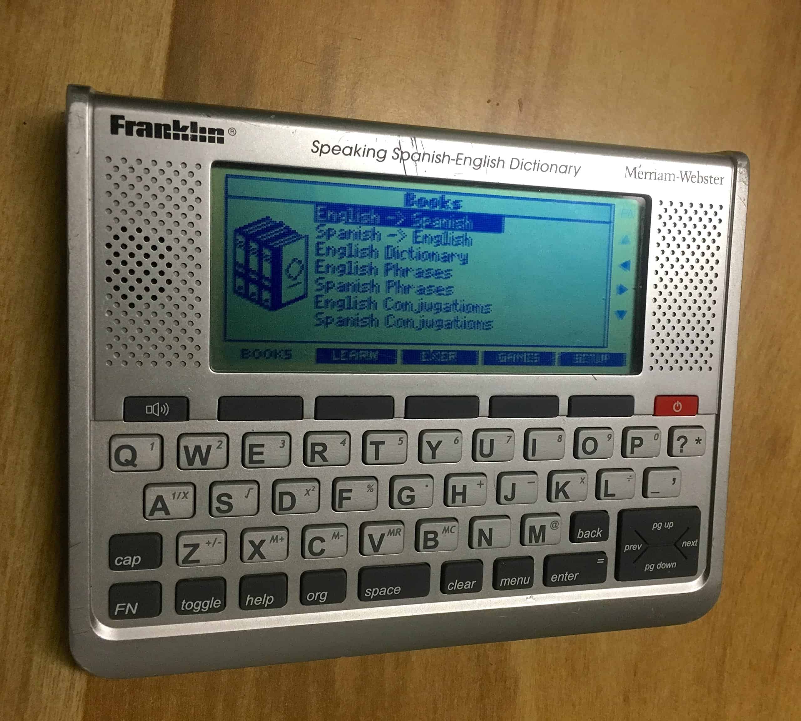 El Diccionario Español-Inglés Hablante BES-1890 de Franklin Electronic Publishers es un dispositivo portátil de aprendizaje de idiomas que puede ayudar a cualquiera a mejorar su lectura, escritura y comprensión del español o inglés. En su interior tendrás acceso instantáneo a más de 5,000,000 traducciones totales y 4,800 frases de ejemplo. Puedes escuchar todas estas palabras y frases pronunciadas con solo pulsar una tecla.