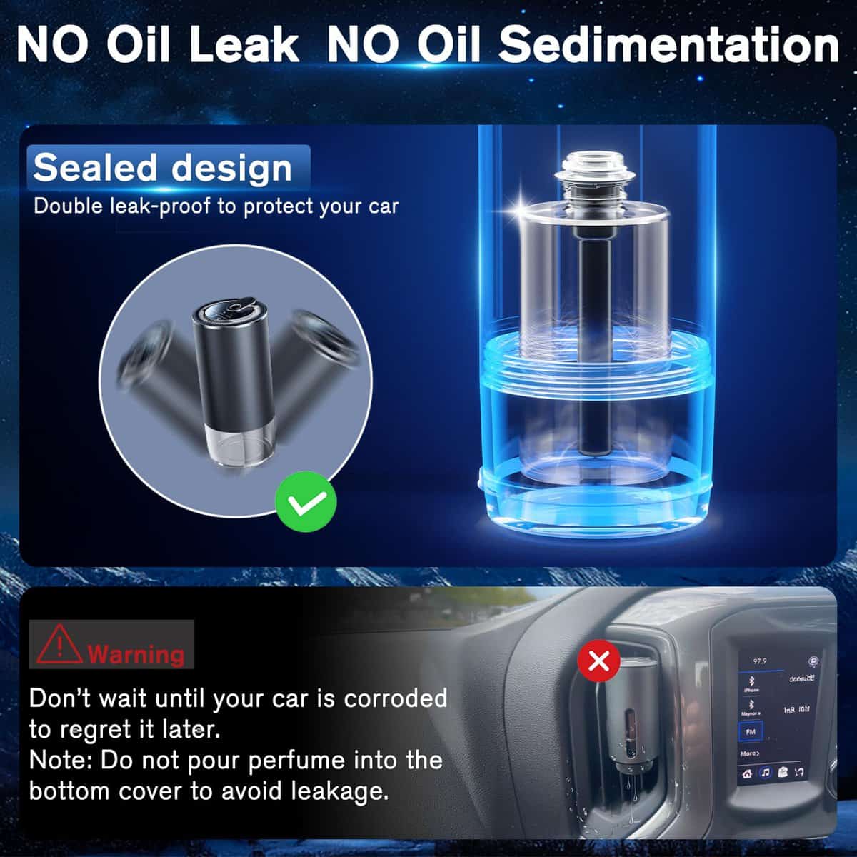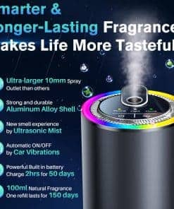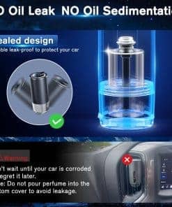 1. Experimenta una experiencia premium de aroma para automóvil con nuestras mezclas de aceites esenciales especialmente formuladas (7 fragancias de lujo disponibles). Estos aceites sin alcohol y no tóxicos proporcionan una frescura superior sin químicos agresivos. La tecnología de difusor ultrasónico crea partículas de niebla más finas para una mejor distribución del aroma en todo tu vehículo.
