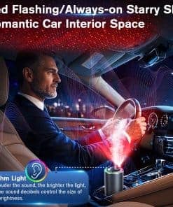 2. Transforma tu automóvil con proyecciones de estrellas brillantes y luces RGB dinámicas sincronizadas con la música. Crea la atmósfera perfecta para los viajes nocturnos. Las luces del difusor de aroma para automóvil se ajustan automáticamente al ritmo de tu música.