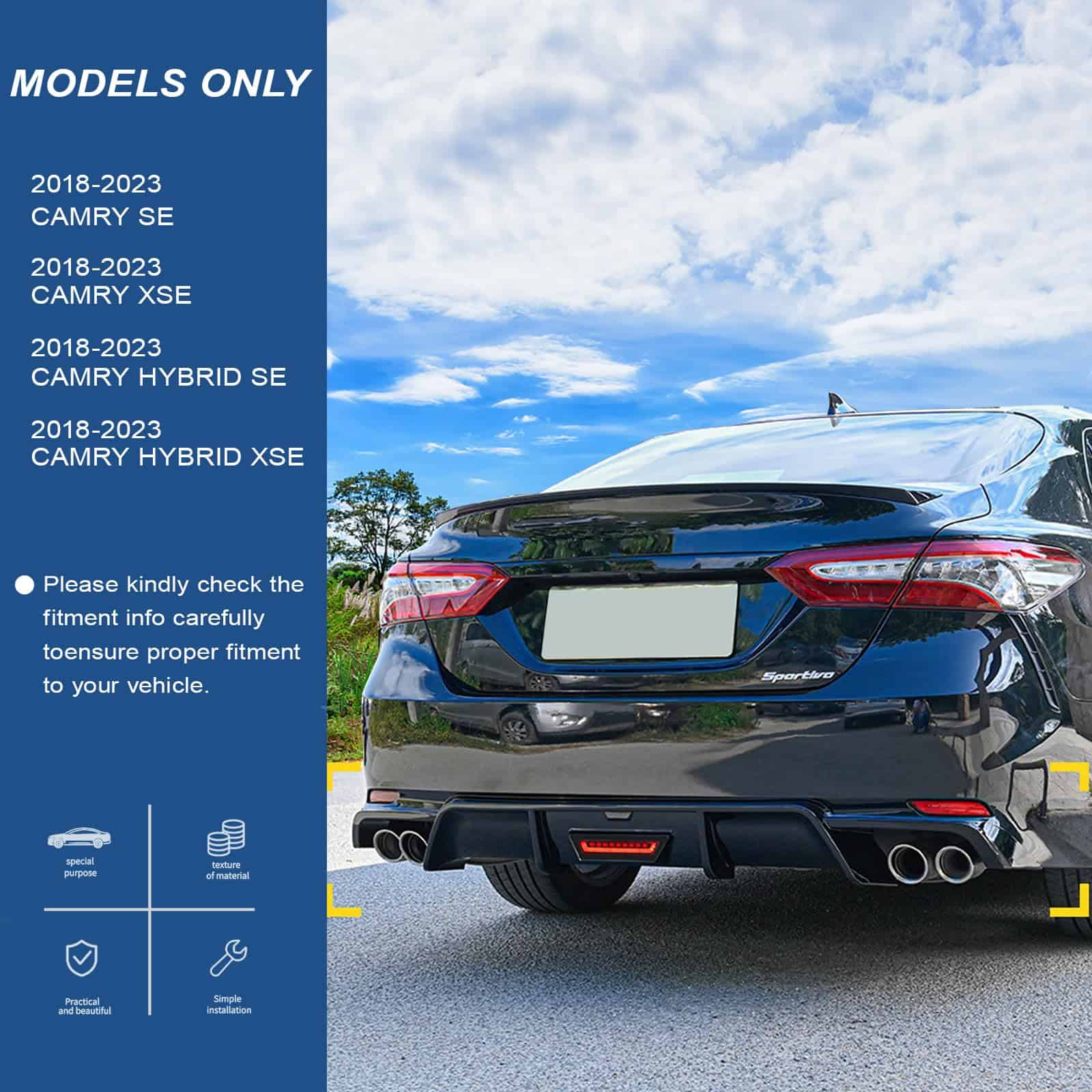 1. Excelente Compatibilidad: Este difusor trasero está diseñado específicamente para los modelos SE/XSE híbridos de Camry 2018-2024, garantizando un ajuste perfecto para su vehículo. Por favor, verifique cuidadosamente la información de ajuste para asegurar una instalación adecuada.