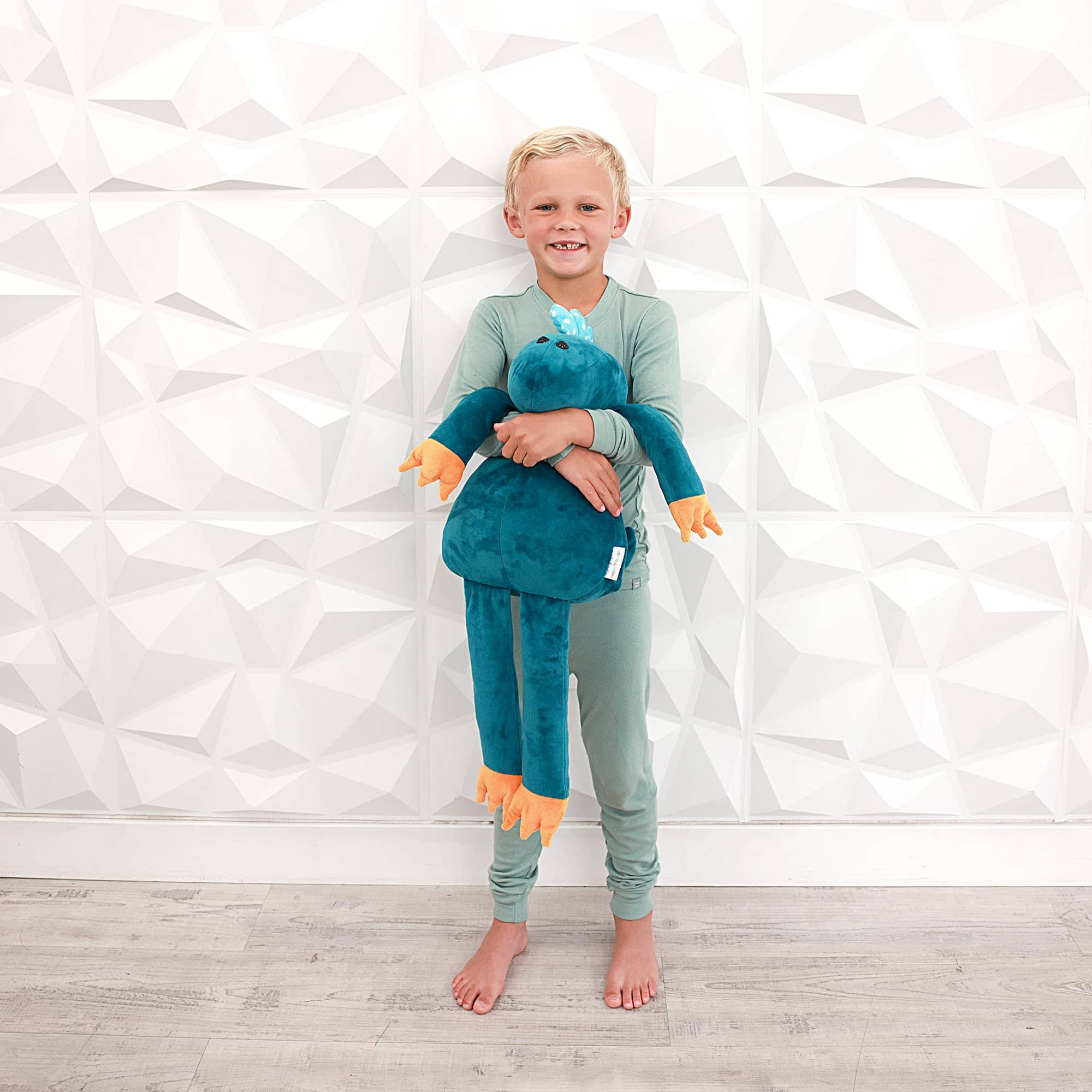 Hazte amigo de Dino. Este peluche de minky ultra suave y abrazable de Dino mide 24″ de alto con brazos y piernas flexibles, ¡perfecto para jugar y abrazar! Dino es el compañero definitivo para la hora de jugar, la siesta y la hora de dormir. Material premium de poliéster, 10″x 24″, diseñado para sentarse erguido, certificado de nacimiento personalizable, relleno de fibra hipoalergénica, costuras seguras con ojos de plástico, a prueba de juegos (lavable a máquina/secado en secadora). El Paquete Experiencia Definitivo de Peluche Dino se vende por separado.
