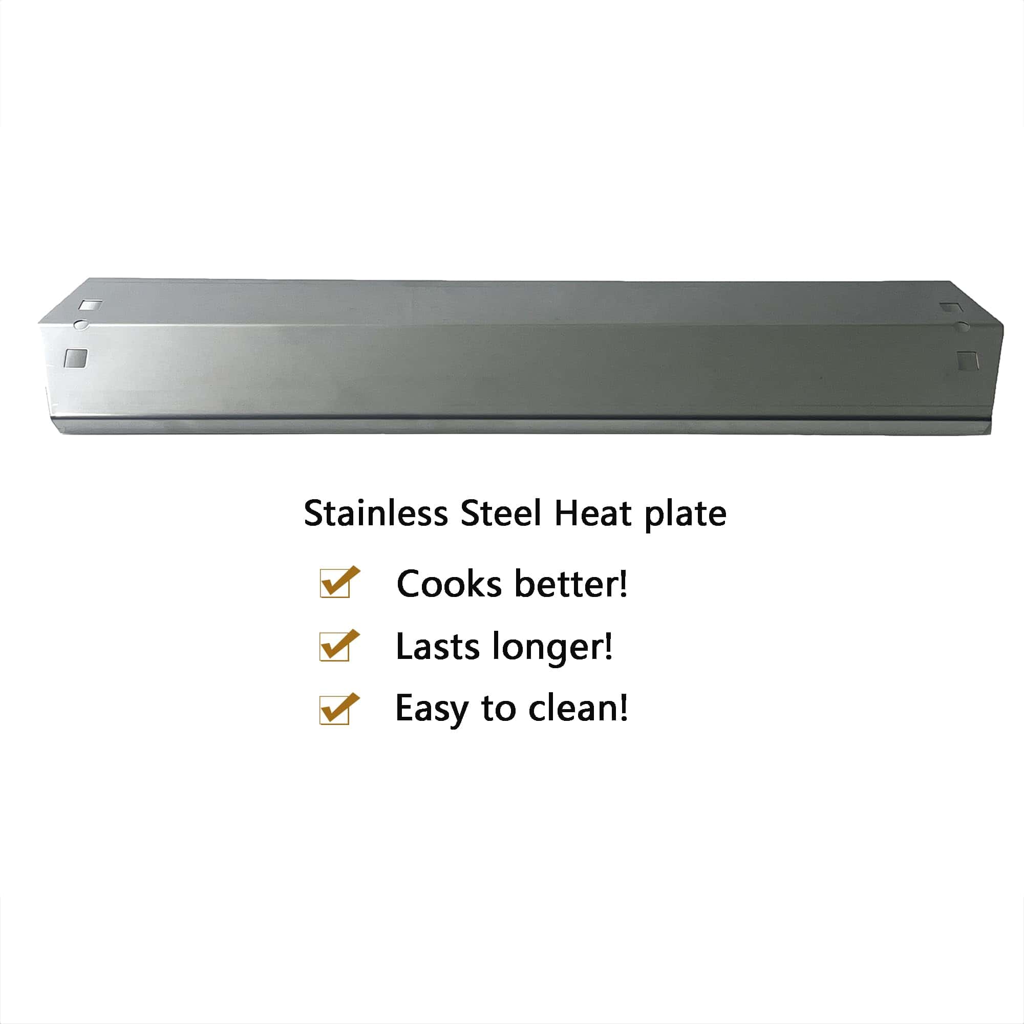 Direct Store Parts DP106 (paquete de 3) placas de calor de acero inoxidable de 18 15/16 x 3 7/8 pulgadas de reemplazo para CharGriller 3001, 3008, 3030, 4000, 5050, 5252, para King Griller 3008, 5252 Gas Grill; El kit de Direct Store Parts incluye 3 placas de calor de acero inoxidable; Dimensiones: 18 15/16″ x 3 7/8″; Material: Acero inoxidable; Placa de calor duradera de acero inoxidable, superficie lisa, fácil de limpiar, duradera a largo plazo, puede proteger los quemadores. Reemplazo para Charcoal 3001 3030, 3008, 4000, 4208, 5050, 5072, 5252, 5650, se adapta a King Griller 3008, 5252. Piezas de repuesto para CharGriller, reemplazo de placa de calor para parrilla CharGriller, piezas para parrilla CharGriller, piezas de repuesto para parrilla CharGriller bbq. Reemplazo para partes 95051. Utilizado con quemador 15051.