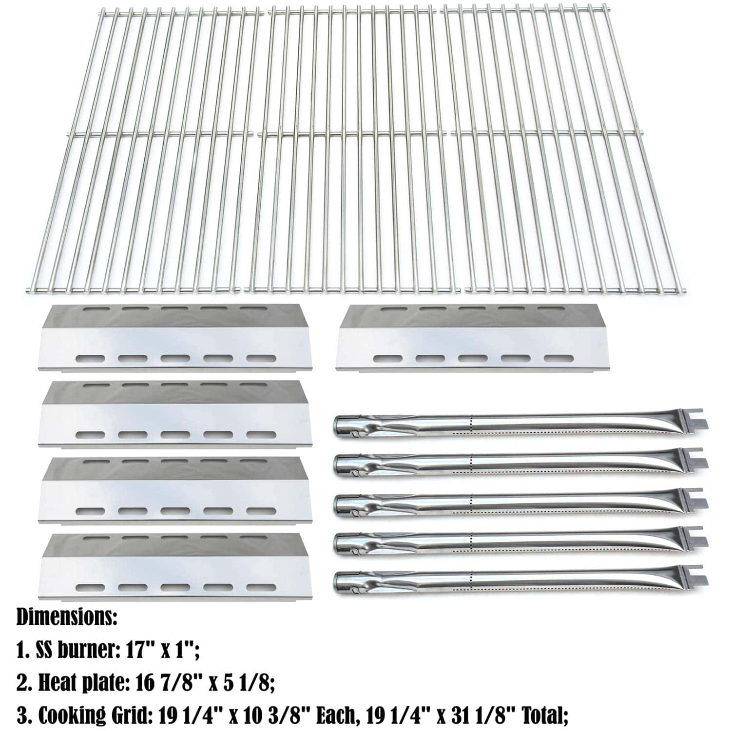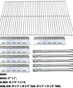 Direct store Parts Kit DG210 Repuesto para Quemadores, Placas de Calor y Rejilla de Cocina para Parrilla de Gas Ducane 30400042, 30400043, 30558501; Se adapta a la parrilla de gas Ducane 30400042, 30400043, 30558501; Números de pieza originales: 30500702, DUCHD1; El kit de repuestos de Direct store Parts incluye 5 quemadores de acero inoxidable, 5 placas de calor de acero inoxidable y 1 juego de 3 rejillas de cocina de acero inoxidable sólido.