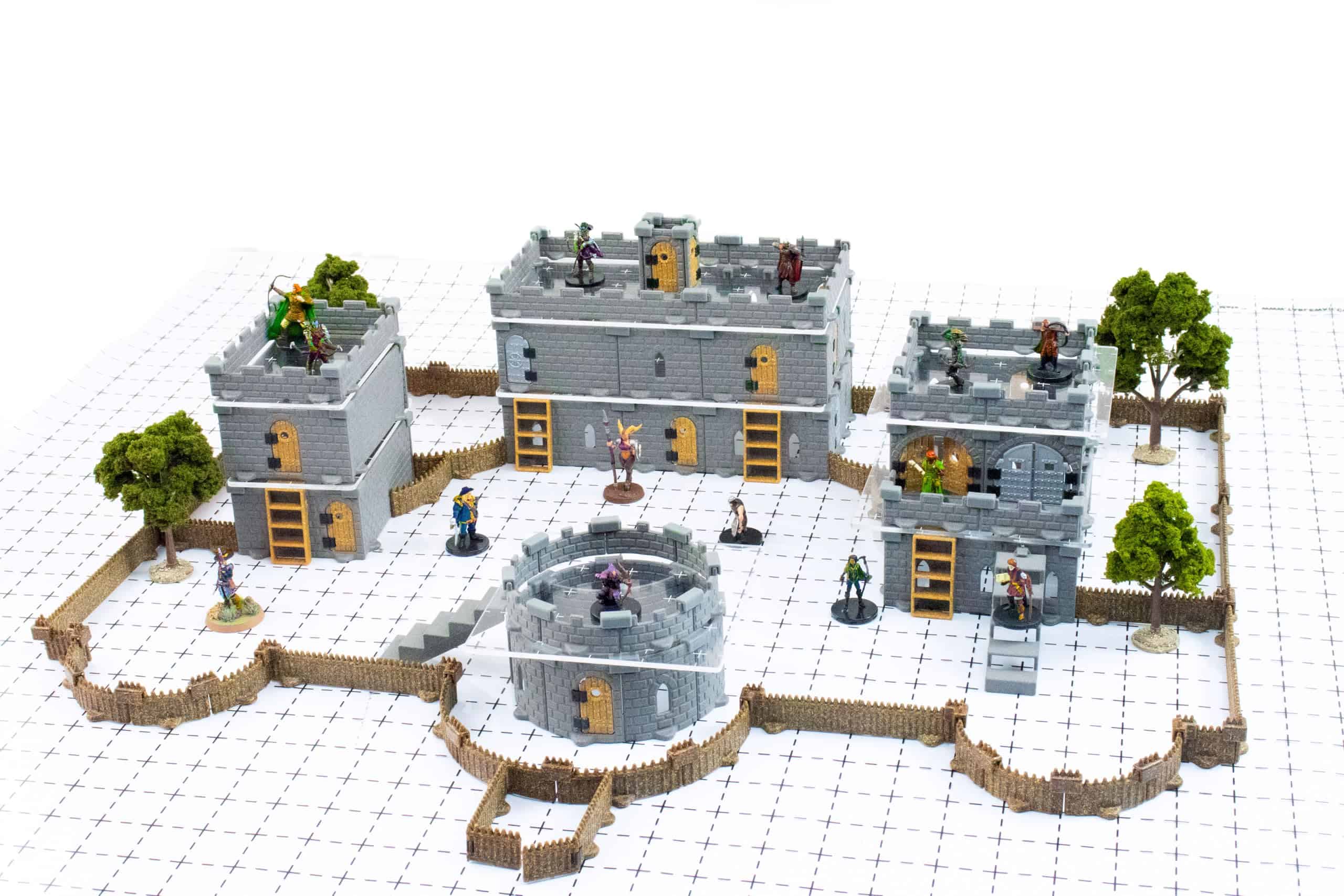166 piezas de muros rectos y curvos/rampas/palizadas, entradas, puertas, escaleras y escalas; este set también contiene 10 plataformas para construir verticalmente y más de 273 abrazaderas superiores y clips de puertas para construir castillos versátiles. Más de 7.5 metros de longitudes para trabajar: Paredes curvas – 40.64 cm (secciones de 10.16 cm de diámetro) Paredes rectas – 2.95 metros Ramparts – 2.16 metros Palizadas – 2.35 metros ¡Más de 150in² de plataformas acrílicas para construir esos increíbles puestos! 36 puertas operativas en 2 colores (Madera Fina y Plateado) y 5 estilos y secciones reales de paredes curvas: ¡obtén la estética de una fortificación real! Escaleras funcionales diseñadas para que las miniaturas de base de 1 pulgada encajen en ellas, ¡para batallas de escaleras épicas! El plástico del producto es inmune al isopropílico y acetona; la pintura y los marcadores permanentes se pueden limpiar con cualquiera de estos solventes! Compatible con mats de cuadrícula a escala 1, sistemas de baldosas, miniaturas y otros accesorios. Viene en un estuche de transporte compacto y resistente con asa para transportabilidad. Se adapta fácilmente a bolsos mensajeros y mochilas. Hecho en EE. UU. con plástico ecológico que contiene un 30% de materiales reciclados preconsumidor y fibras naturales. Se requiere cierto montaje.