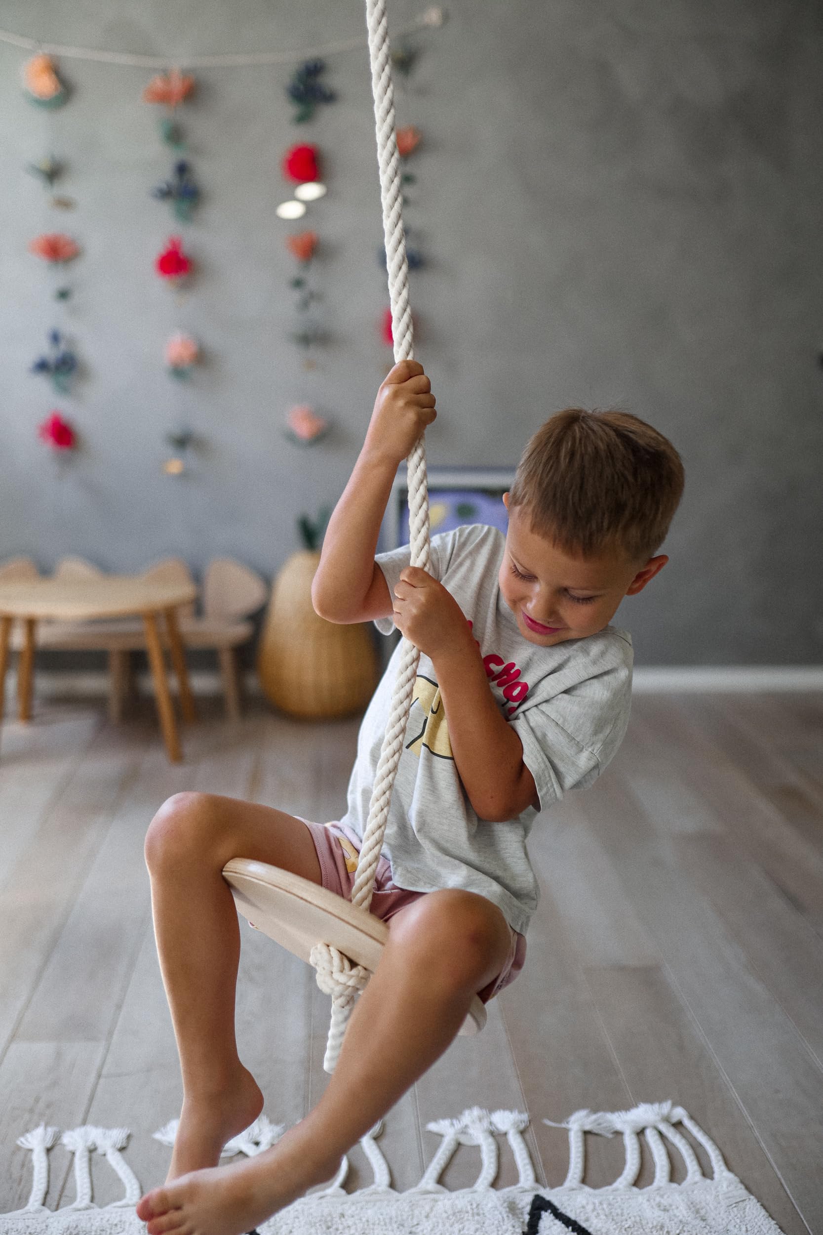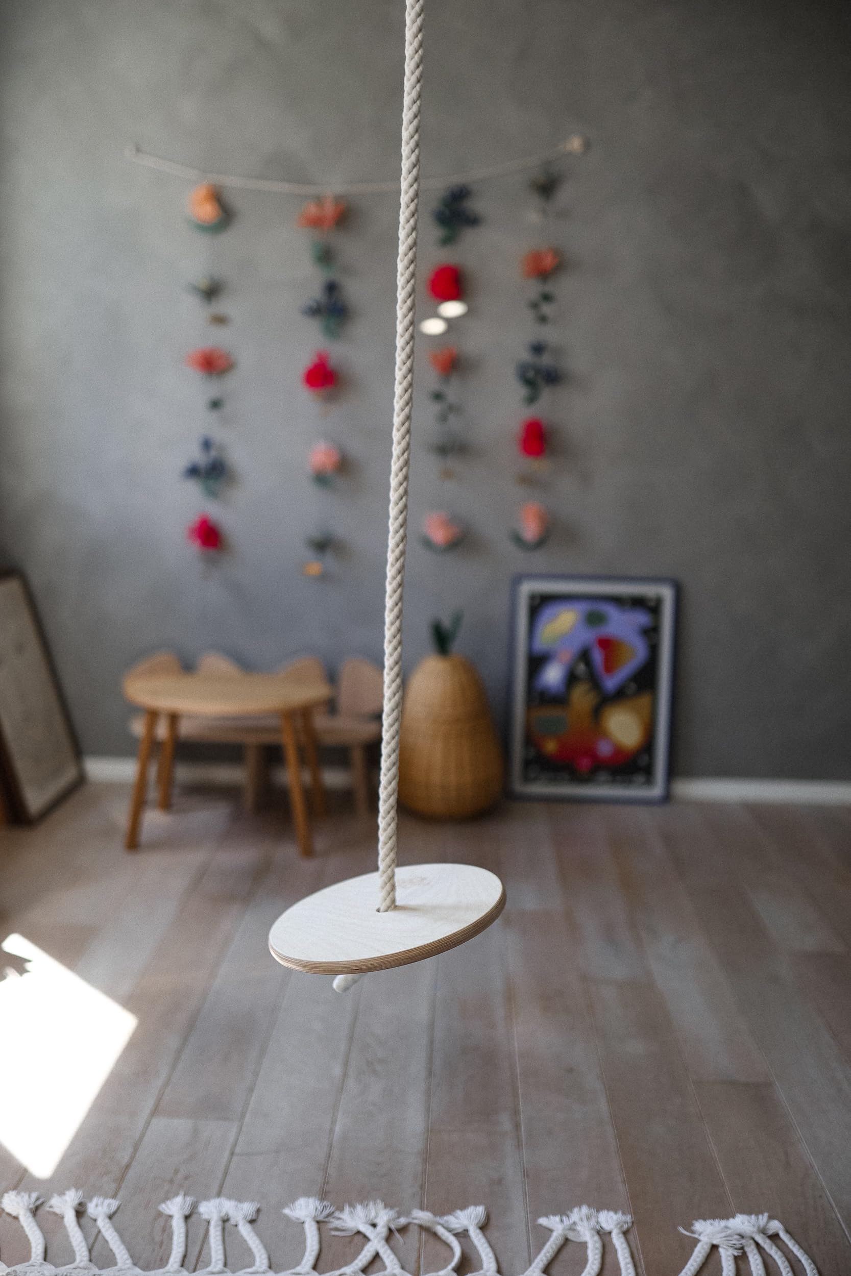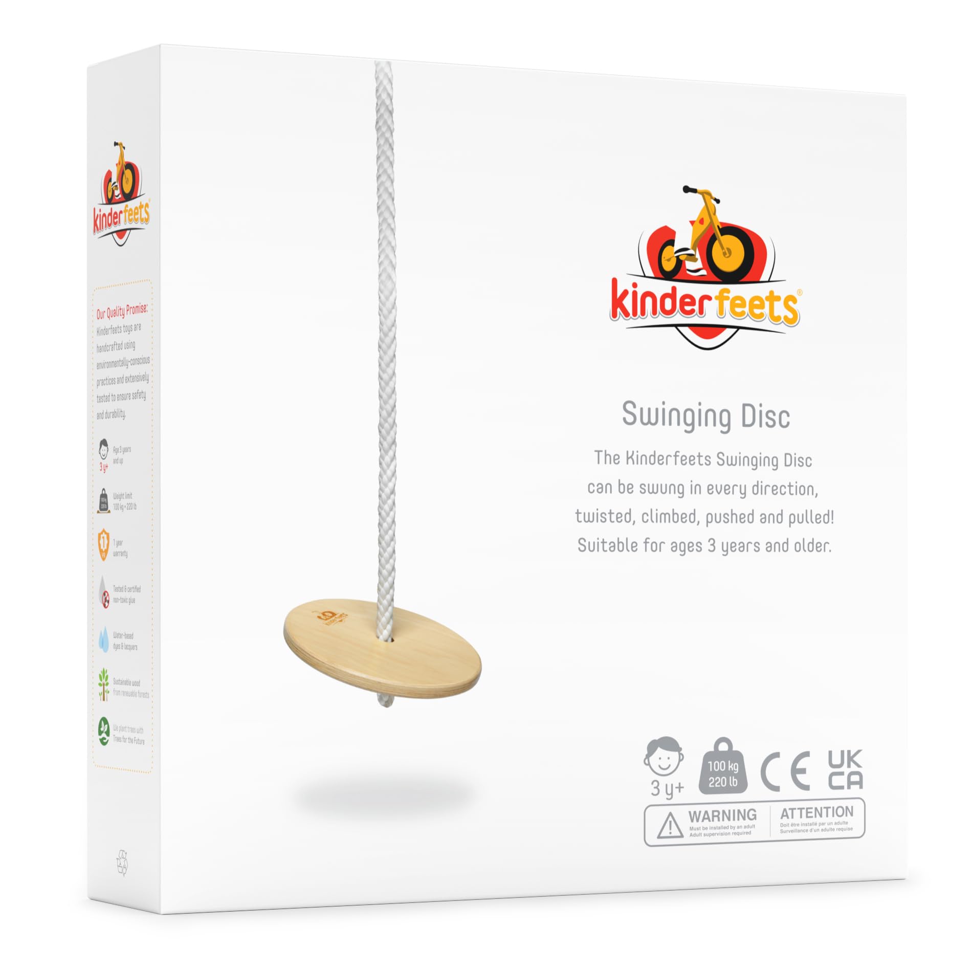 2. SOSTENIBLE: Hecho a mano con madera de abedul y cuerda natural; y acabado con un barniz base agua no tóxico. El disco columpio se combina maravillosamente con el Columpio para Niños de Kinderfeets, el Trapecio con Anillas y la Escalera de Trepar. ¡Es ligero, fácil de montar y conveniente de almacenar! El columpio de platillo es perfecto para el jardín, un columpio en un árbol, sala de juegos, oficina o parque.