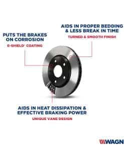 Los rotores premium de freno de Wagner están diseñados con tecnología enfocada en proporcionar un rendimiento máximo, resistencia a la corrosión y facilidad de instalación. Combina los rotores de Wagner con las pastillas de freno de Wagner para un rendimiento óptimo.
