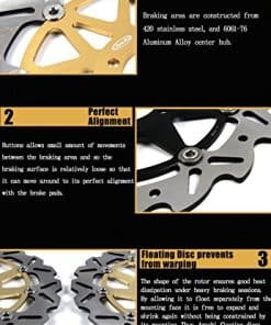 Bienvenido a la Tienda Oficial de Arashi. Compra en paquete para ahorrar más. Características – Los discos de freno Arashi están construidos con acero inoxidable 420, con aleación de aluminio CNC 6061-T6 en el cubo central para un peso menor. – La forma del disco asegura una buena disipación del calor en sesiones de frenado intenso. – Reduciendo la decoloración del freno, minimizando el pandeo y asegurando la longevidad del rotor – El rotor con ranuras asegura que el agua y la suciedad se dispersen rápidamente al frenar. Especificaciones de los Discos de Freno – Delantero, Diámetro: 310mm, Puntos de Montaje: 6, Floating: Sí Color Opciones Negro – Trasero, Diámetro: 220mm, Puntos de Montaje: 5, Floating: No (Fijo) Opciones de Diseño: Onda Compatibilidad Para Suzuki GSXR 600 2008-2017 Para Suzuki GSXR 750 2008-2017 Para Suzuki GSXR 1000 2009-2015