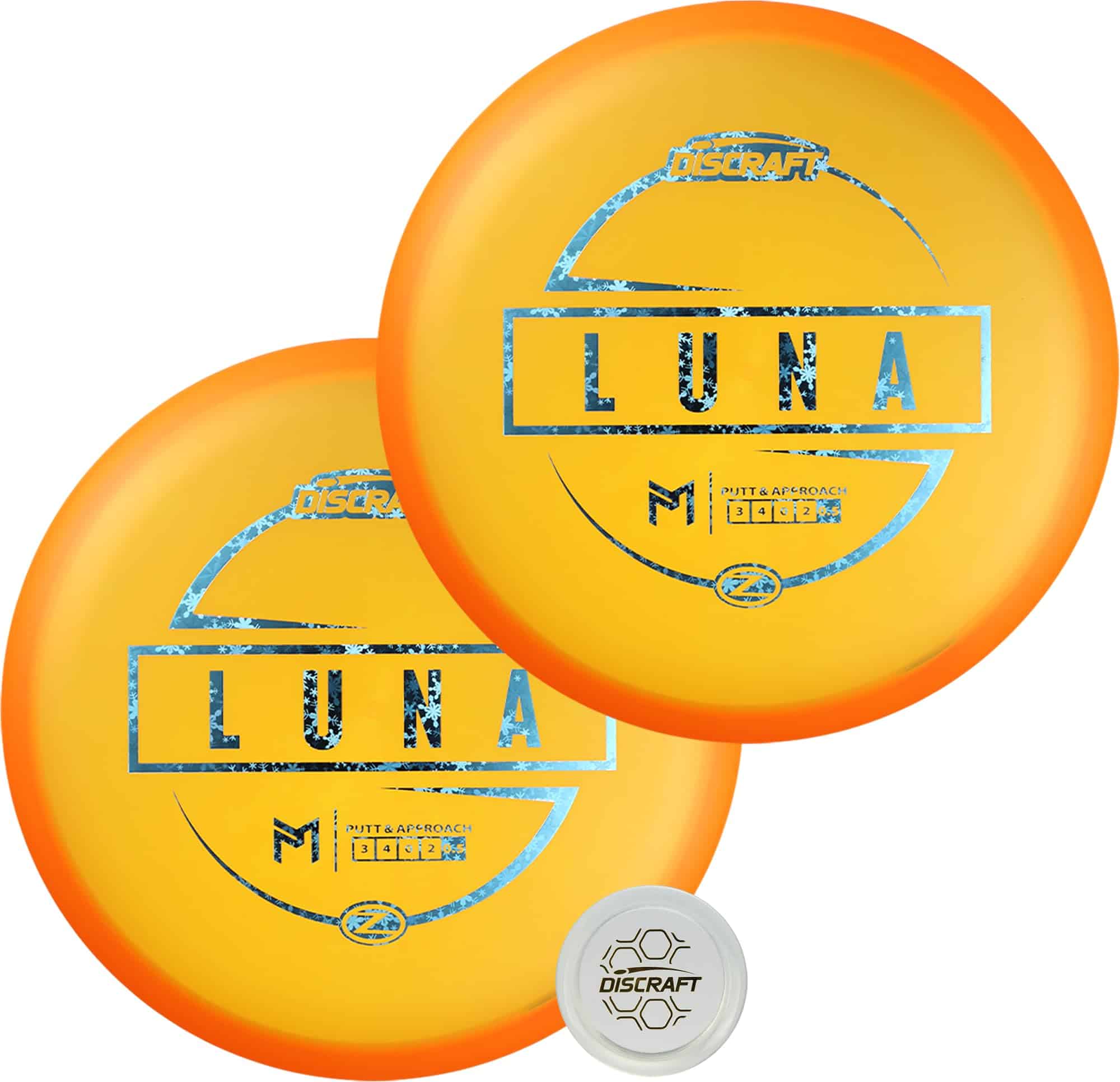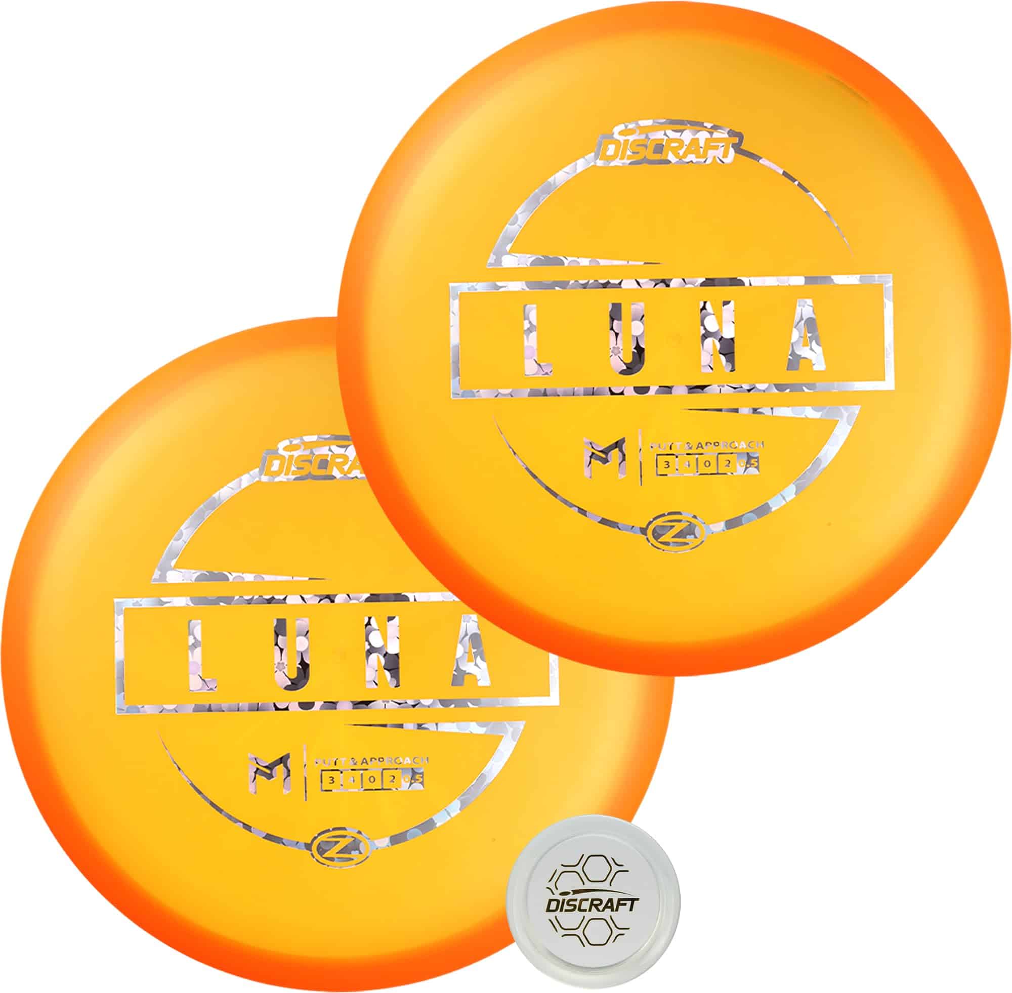 1. Putters de Firma de Paul McBeth: Este pack de 2 incluye dos Lunas Z naranjas idénticas de la serie de firmas de Paul McBeth, reconocidas por su rendimiento consistente y vuelo recto con leve fade.