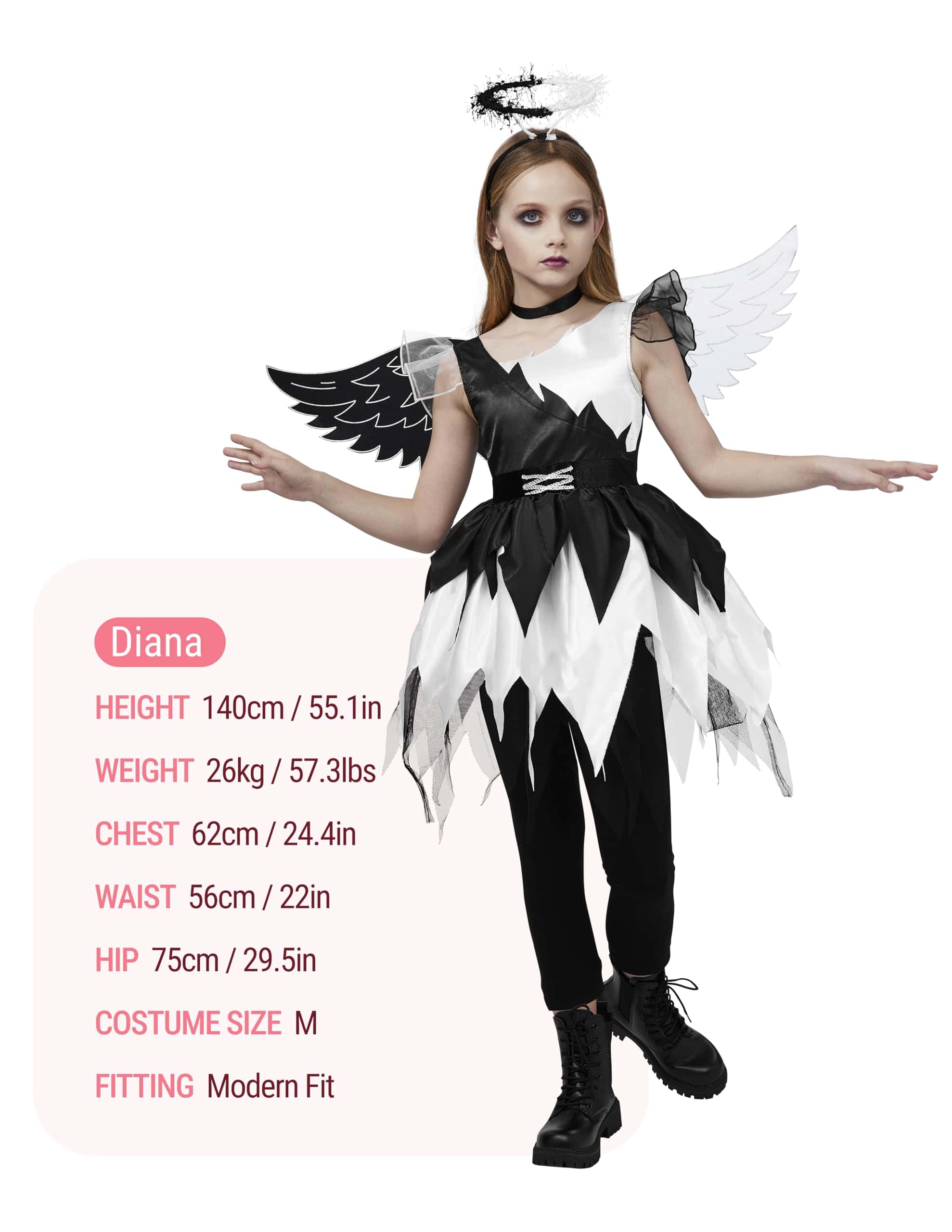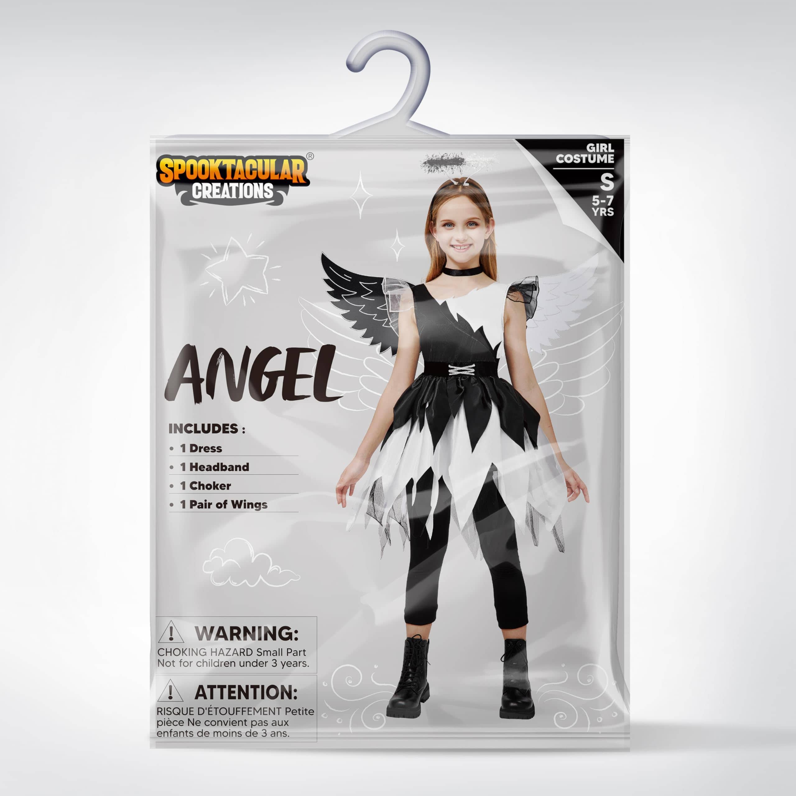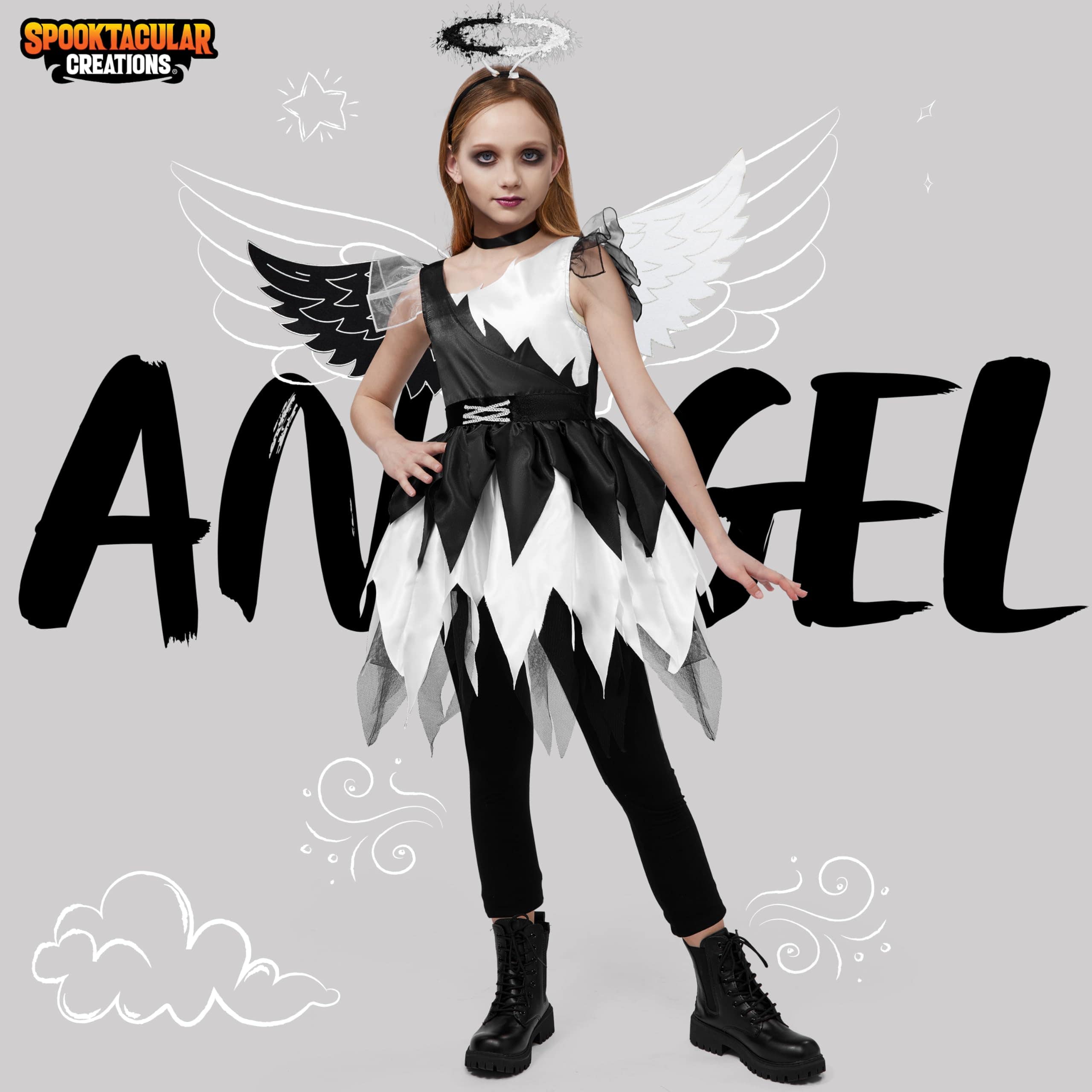 Disfraz de Ángel Retorcido Spooktacular -Negro y Blanco