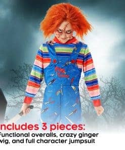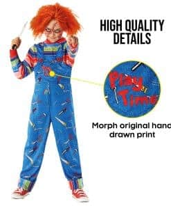 Nuestro disfraz de asesino del tiempo de juego incluye un mono azul con lema característico y parte superior a rayas, la peluca de jengibre también está incluida. ¡Disponible en tres tallas! Nuestro disfraz de tiempo aterrador viene en Mediano (7-9 años), Grande (10-12 años) y X-Large (12-14 años). Consulta la guía de tallas encontrada en las imágenes para obtener más información sobre tallas. Nuestro mono azul cuenta con una impresión digital original de Morph Costumes, con cierre de velcro debajo de los botones para mayor facilidad de uso. Perfecto para un disfraz de Halloween para niños pequeños, fiestas de disfraces y más. Disfraces de Halloween para niños, disfraces de personajes de películas para niños, disfraces de Halloween para niños, disfraces de Halloween aterradores para niños, disfraz de Halloween aterrador para niños, disfraces de Halloween aterradores para niños