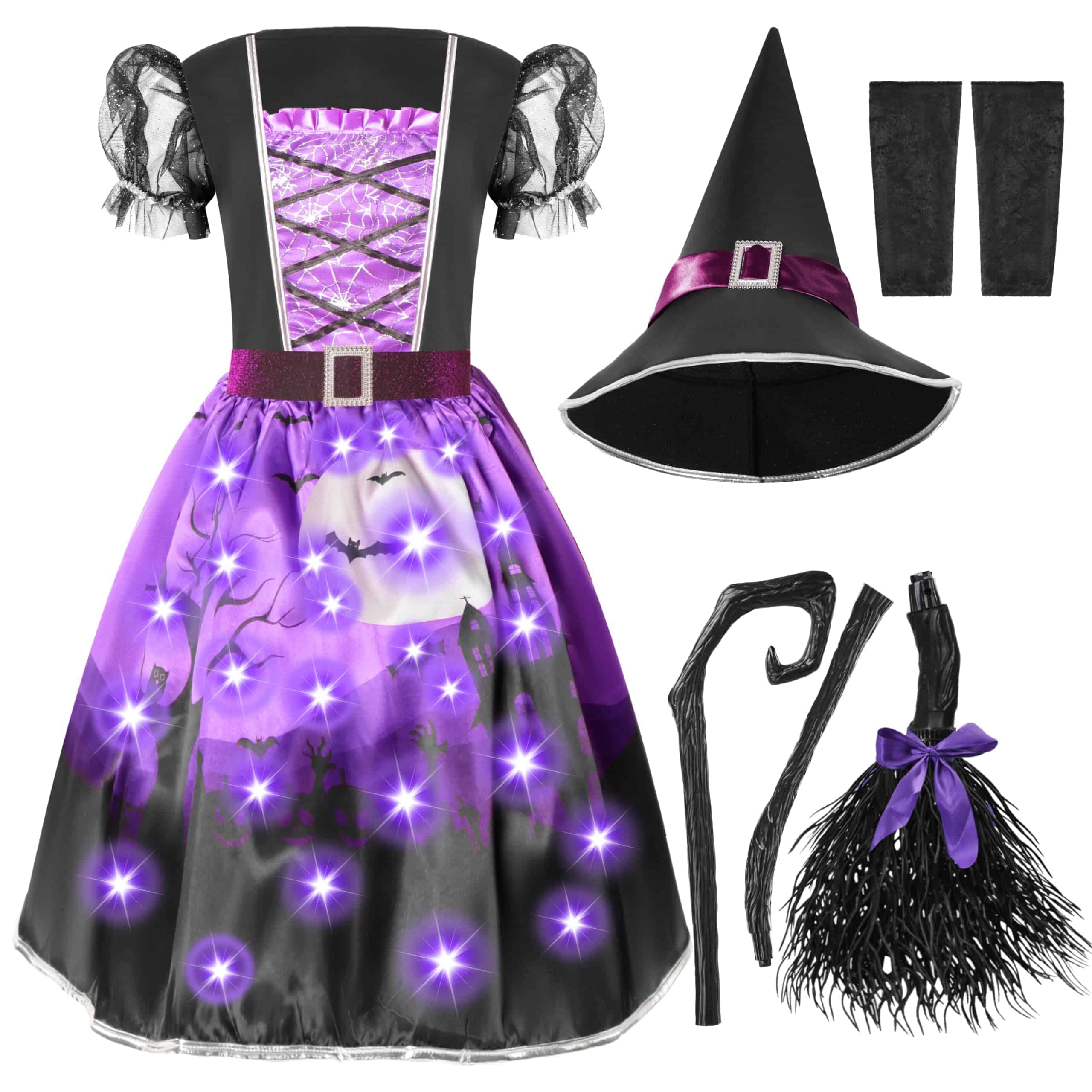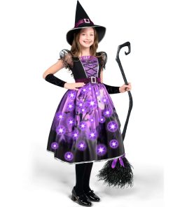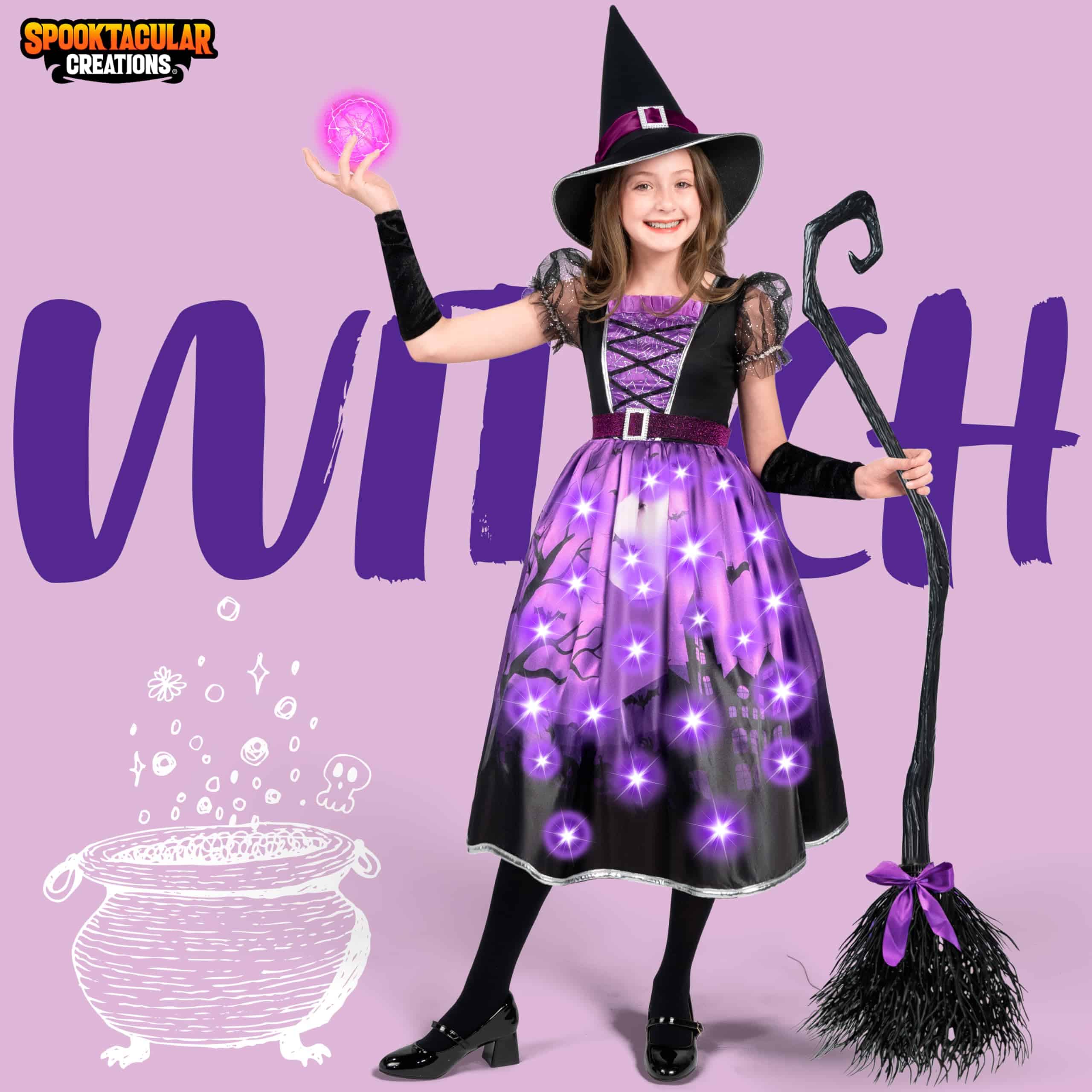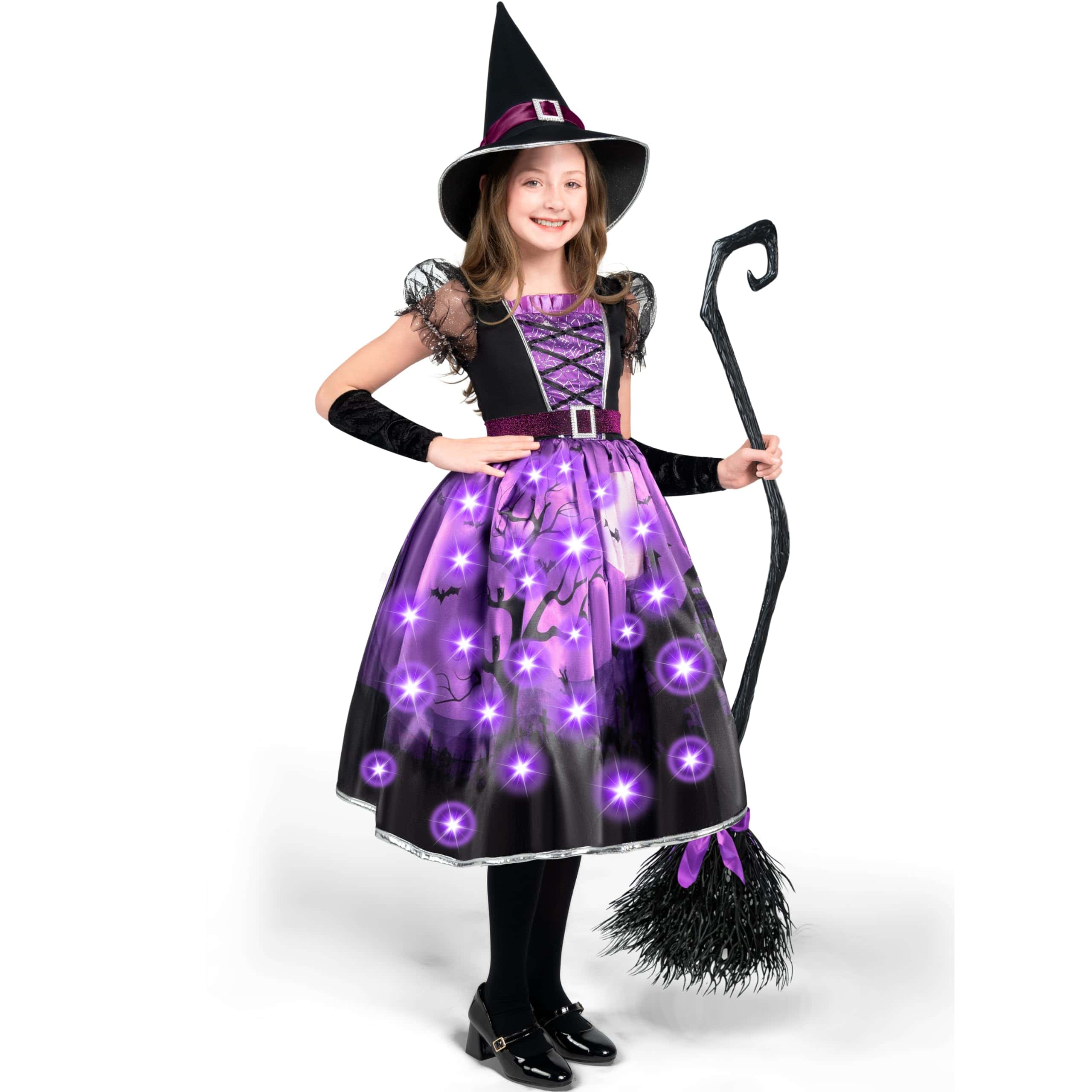 Disfraz de Bruja Spooktacular Creations para Niñas, Disfraz de Bruja Morada con Luces, Disfraz de Bruja Iluminado para Halloween