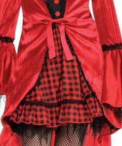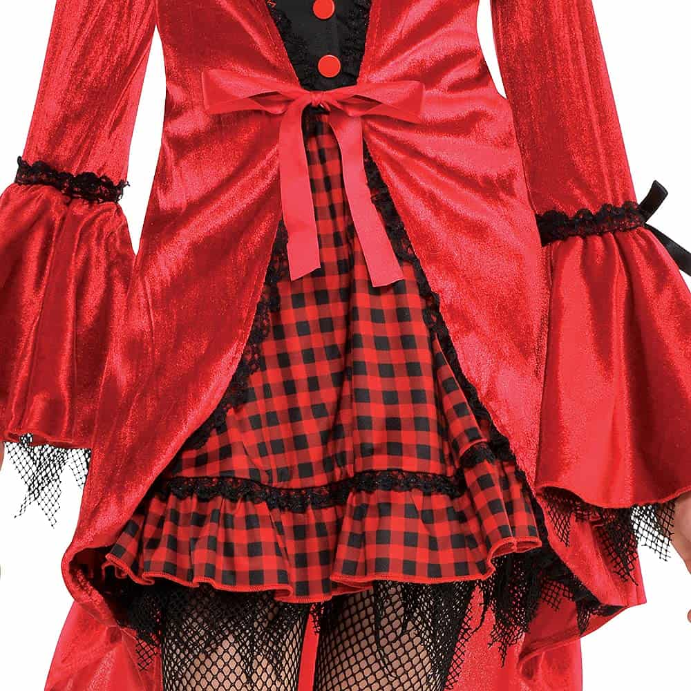 Es hora de pasear por el bosque hasta la casa de la abuelita en un disfraz de caperucita roja gótica para niñas. El vestido de cuadros rojos y negros está adornado con encaje negro y tiene un saco de satén rojo unido que se ata a la cintura. La capucha grande y las mangas acampanadas agregan un poco de misterio y drama a este disfraz de caperucita roja. El encaje negro desgarrado cuelga del dobladillo de la falda y las mangas para dar un aspecto atrevido. Completa este oscuro disfraz de caperucita roja con el collar de gargantilla incluido. Es negro con un encanto de rosa y se sujeta en la parte posterior con un cierre de gancho y lazo. Zapatos, medias y cesta no incluidos.