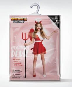 Instrucciones de cuidado: Para mantener tu disfraz limpio y fresco, recomendamos limpiar con esponja o lavar a mano. No blanquear, secar en secadora ni planchar. Con el cuidado adecuado, tu disfraz Heavenly Devil Deluxe Tween seguirá brillando durante muchas temporadas de Halloween por venir