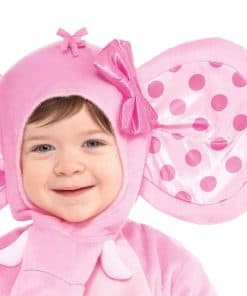 Vista a su pequeñito/a en un disfraz de elefante rosa. La capucha a juego tiene una trompa adjunta que cuelga debajo de su barbilla y orejas con lunares gigantes. Este disfraz amigable para bebés tiene broches para facilitar el cambio de pañal y viene con un sonajero de flores rosa. Puede llevarlo en la muñeca y lo mantendrá entretenido/a toda la noche de Halloween. Ponga las botitas para mantener a su pequeño elefante agradable y cálido.