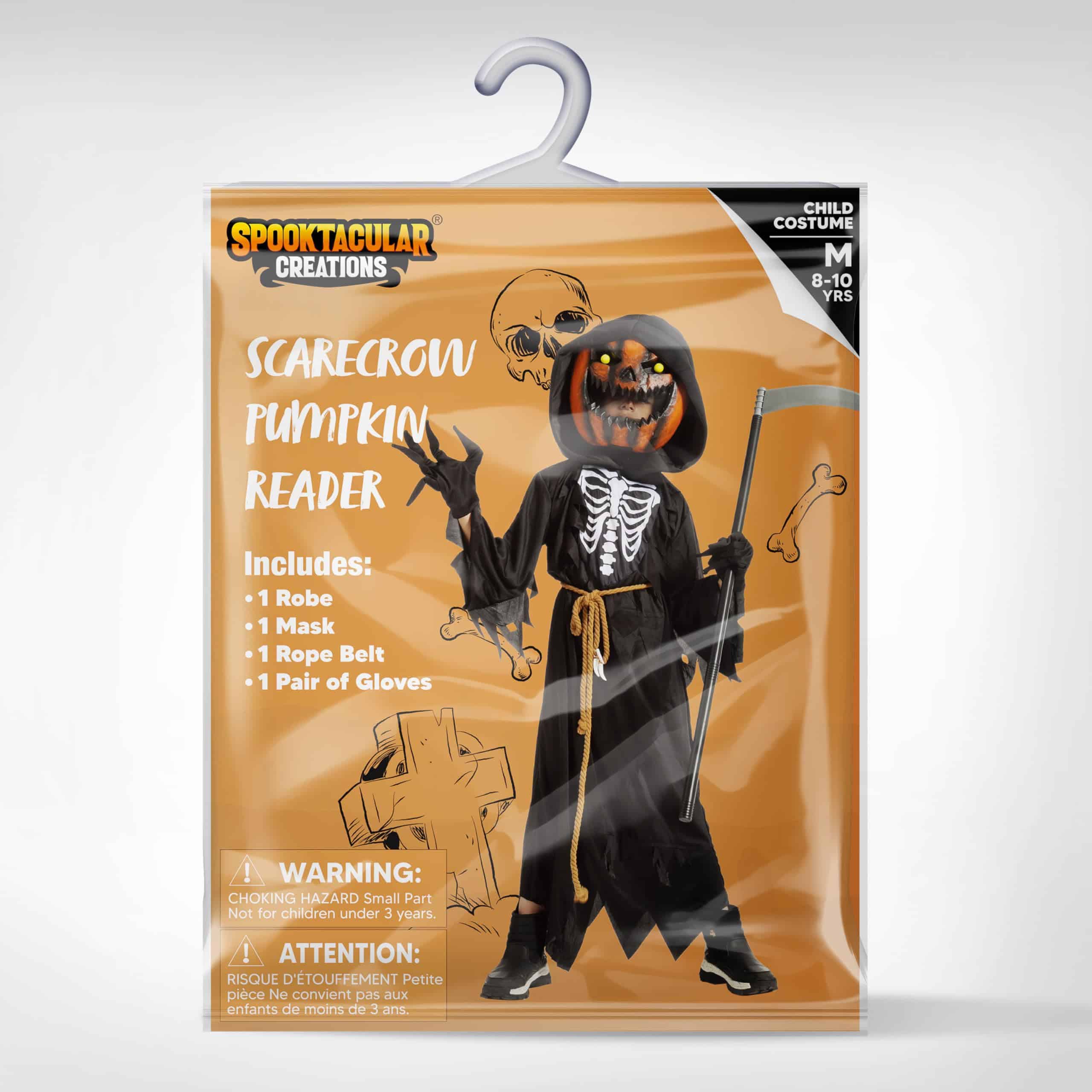 Disfraz de Espantapájaros Calabaza Niño de Spooktacular Creations para Eventos de Halloween, Juegos de Rol, Fiestas.