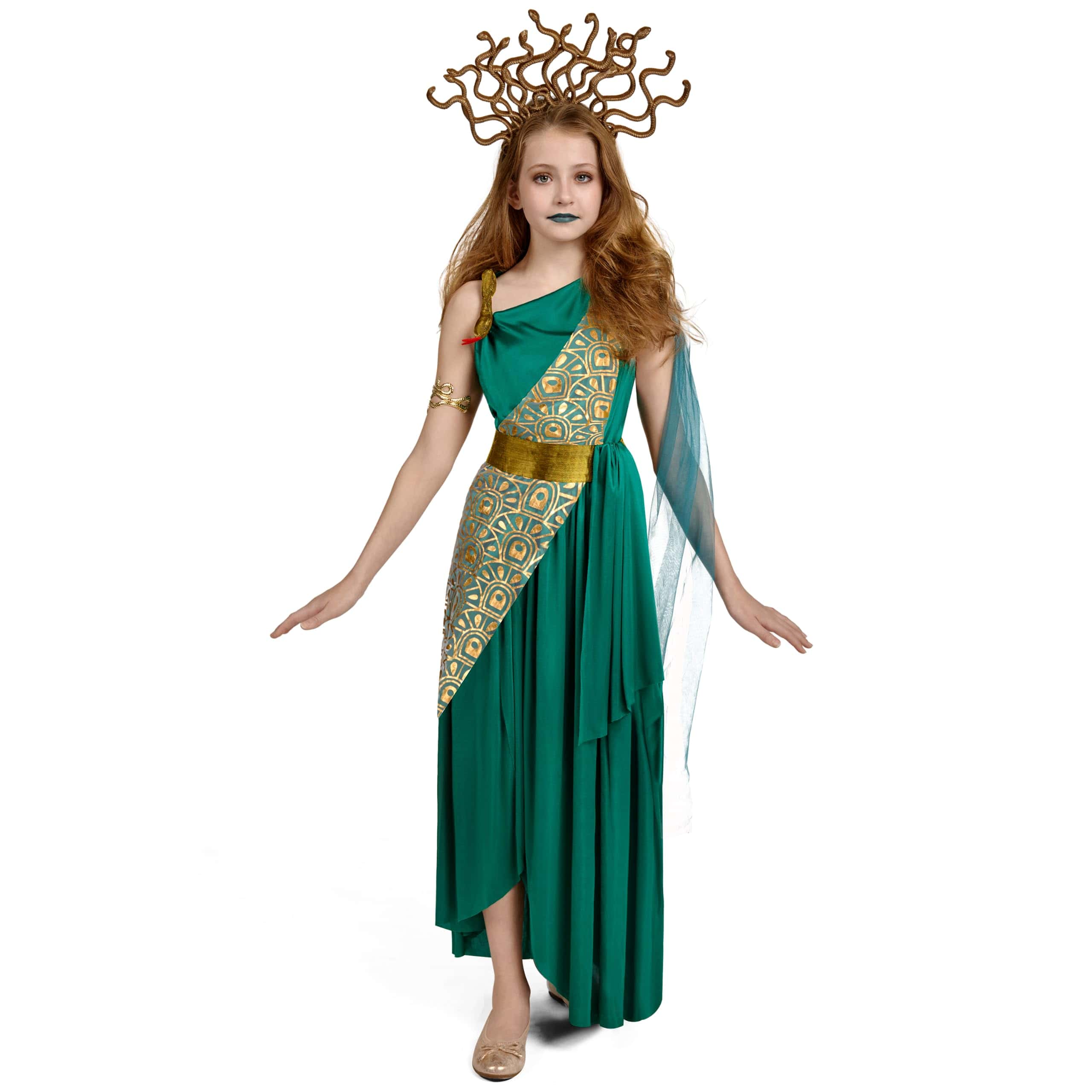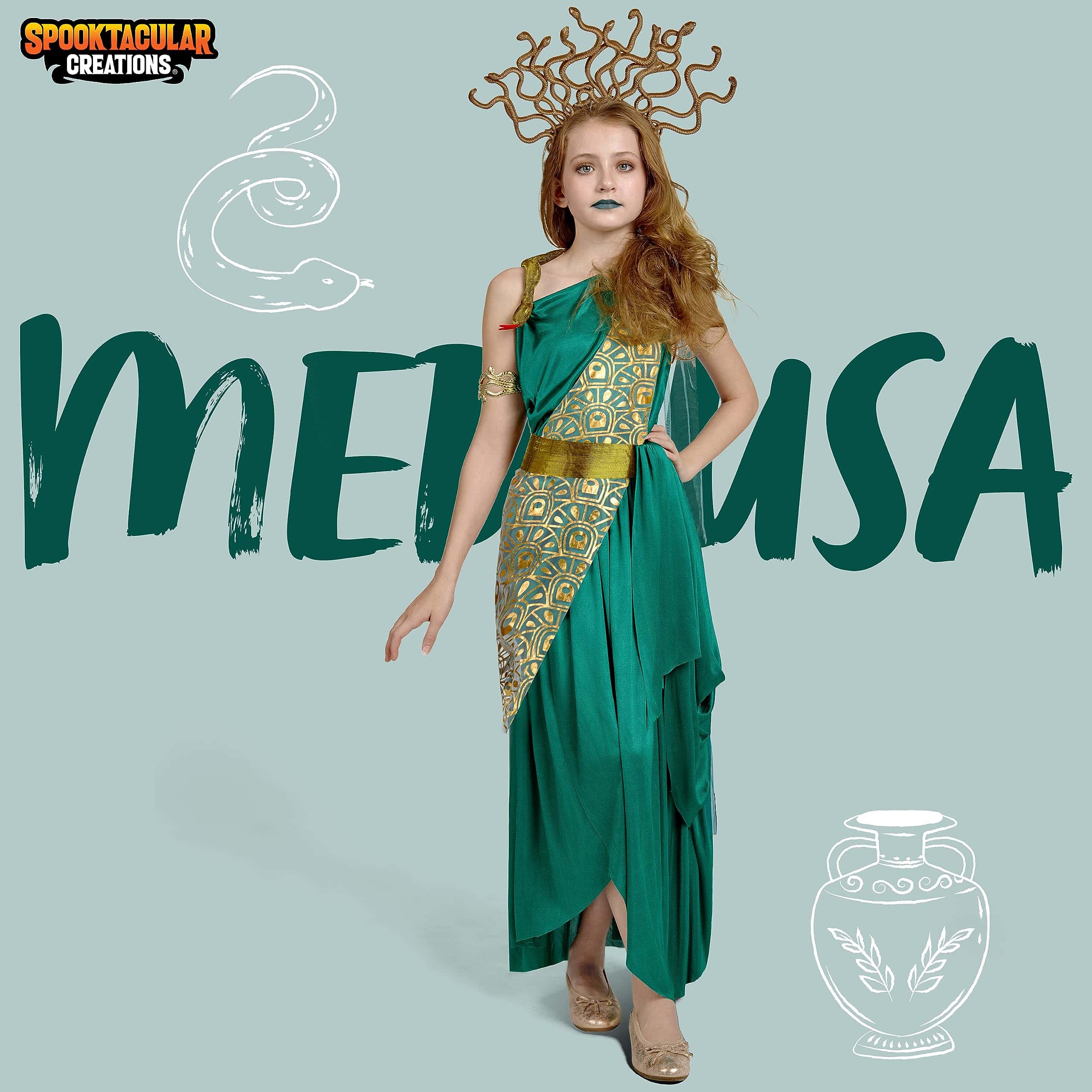 Spooktacular Creations Girls Medusa Costume, Green Medusa costume with Medusa Headpiece Armlet for Halloween Dress Up Parties