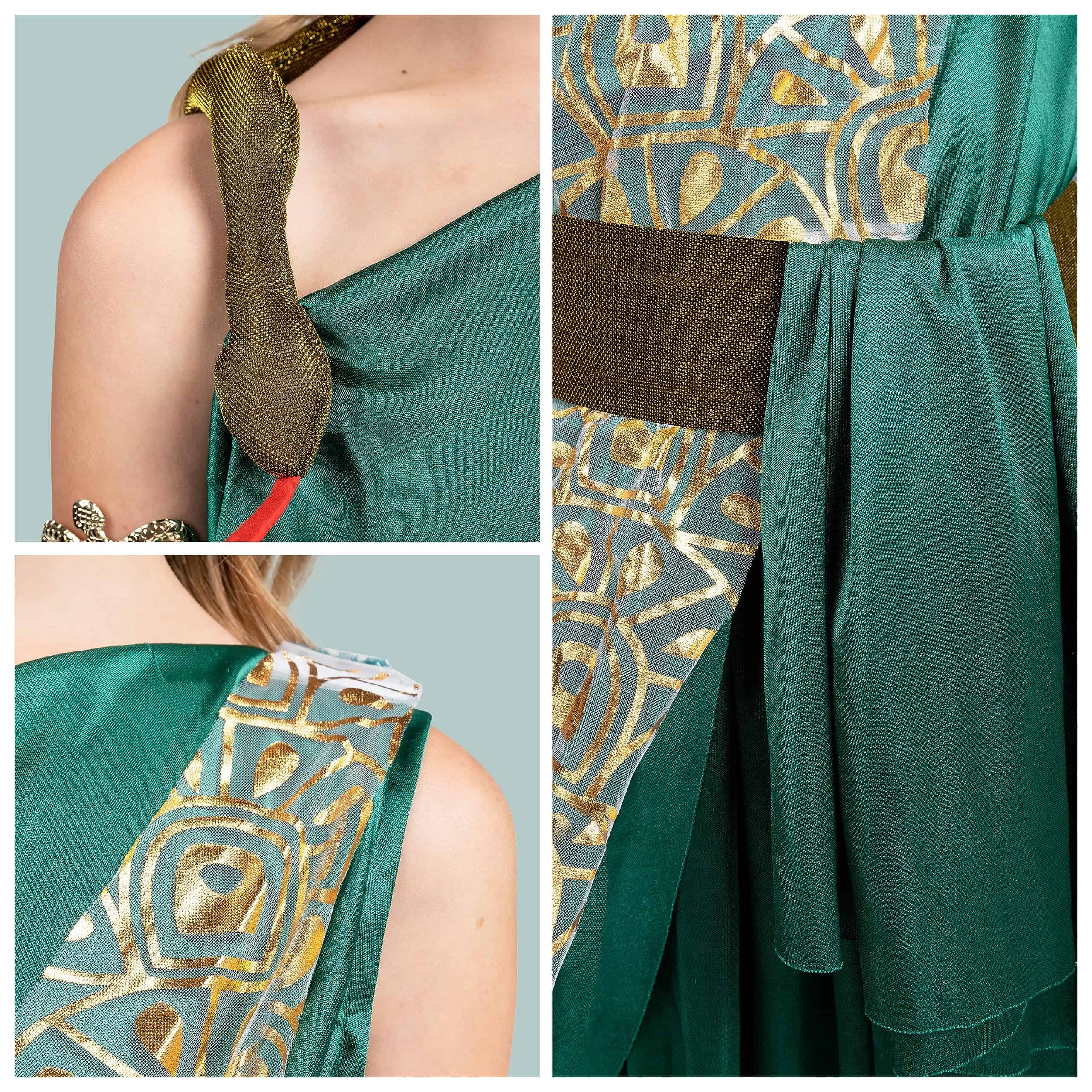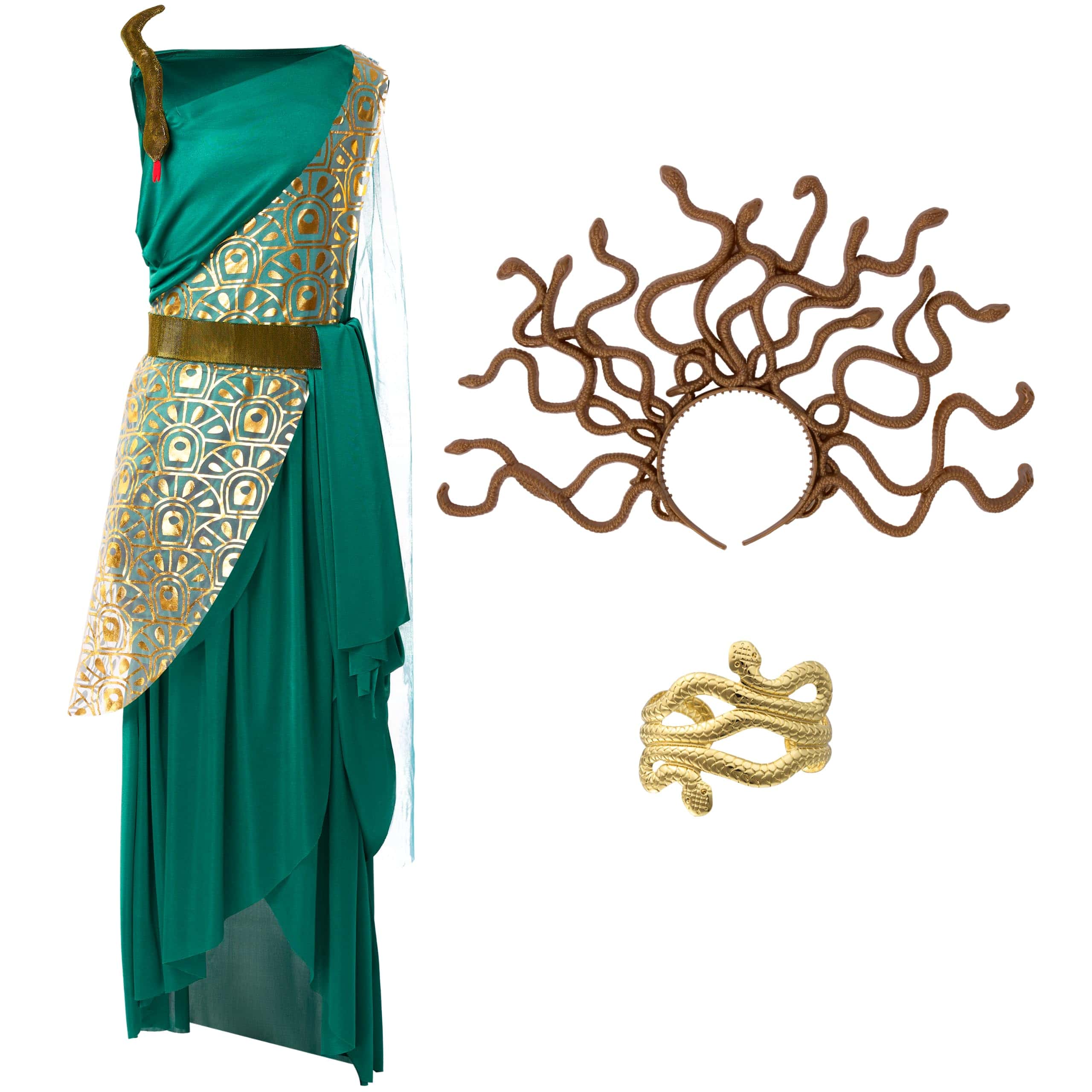 Super Value Pack: Este conjunto de disfraz verde de medusa incluye 1 vestido, 1 diadema, 1 brazalete, 1 cinturón, 1 cinta y 1 banda. Transfórmate en la criatura mítica con nuestro conjunto de disfraz completo, perfecto para liberar tu interior de Medusa