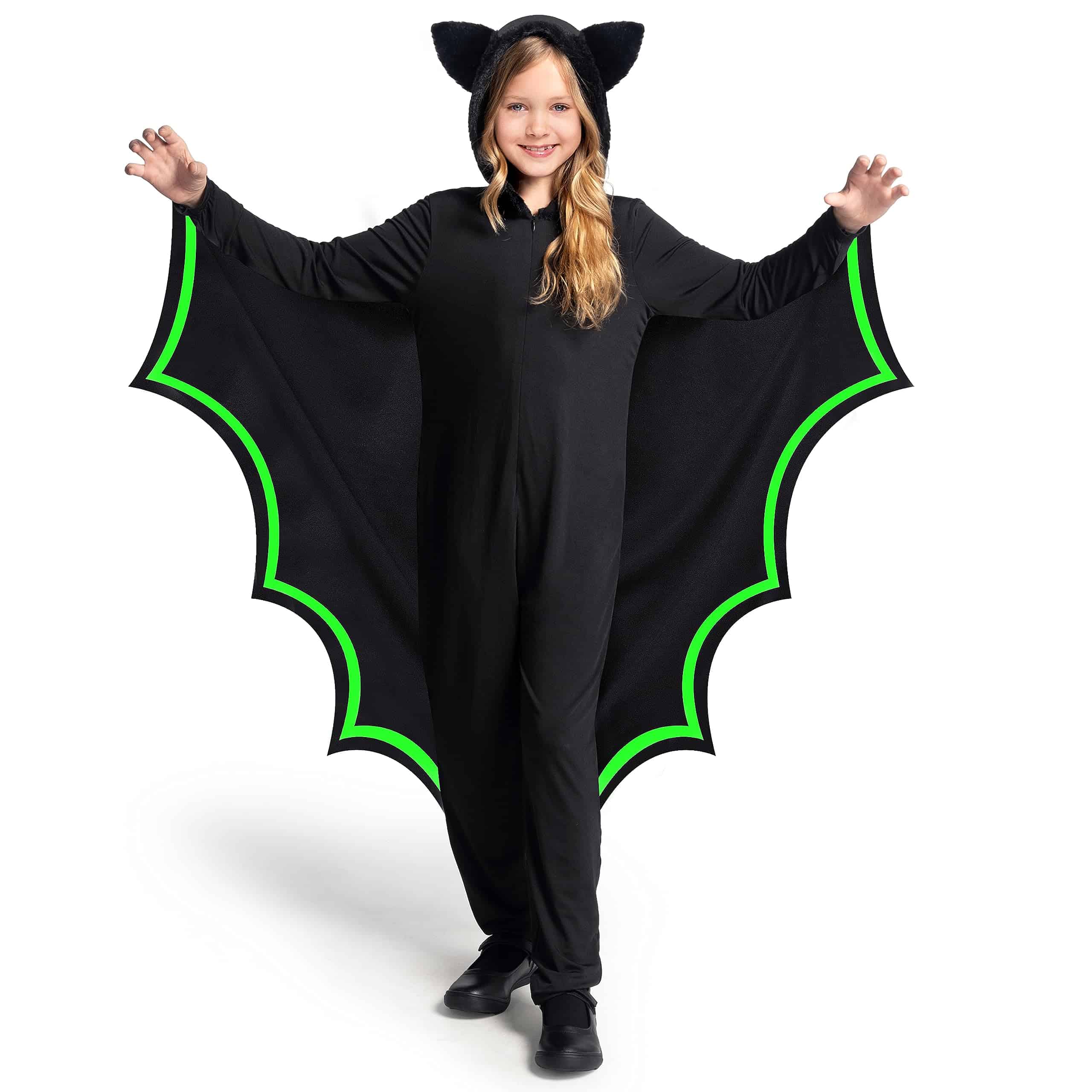 1. Paquete de súper valor: Este disfraz de murciélago incluye un enterizo con capucha que los transforma en un adorable y espeluznante murciélago. Observa cómo revolotean con alegría y encarnan la esencia de Halloween.