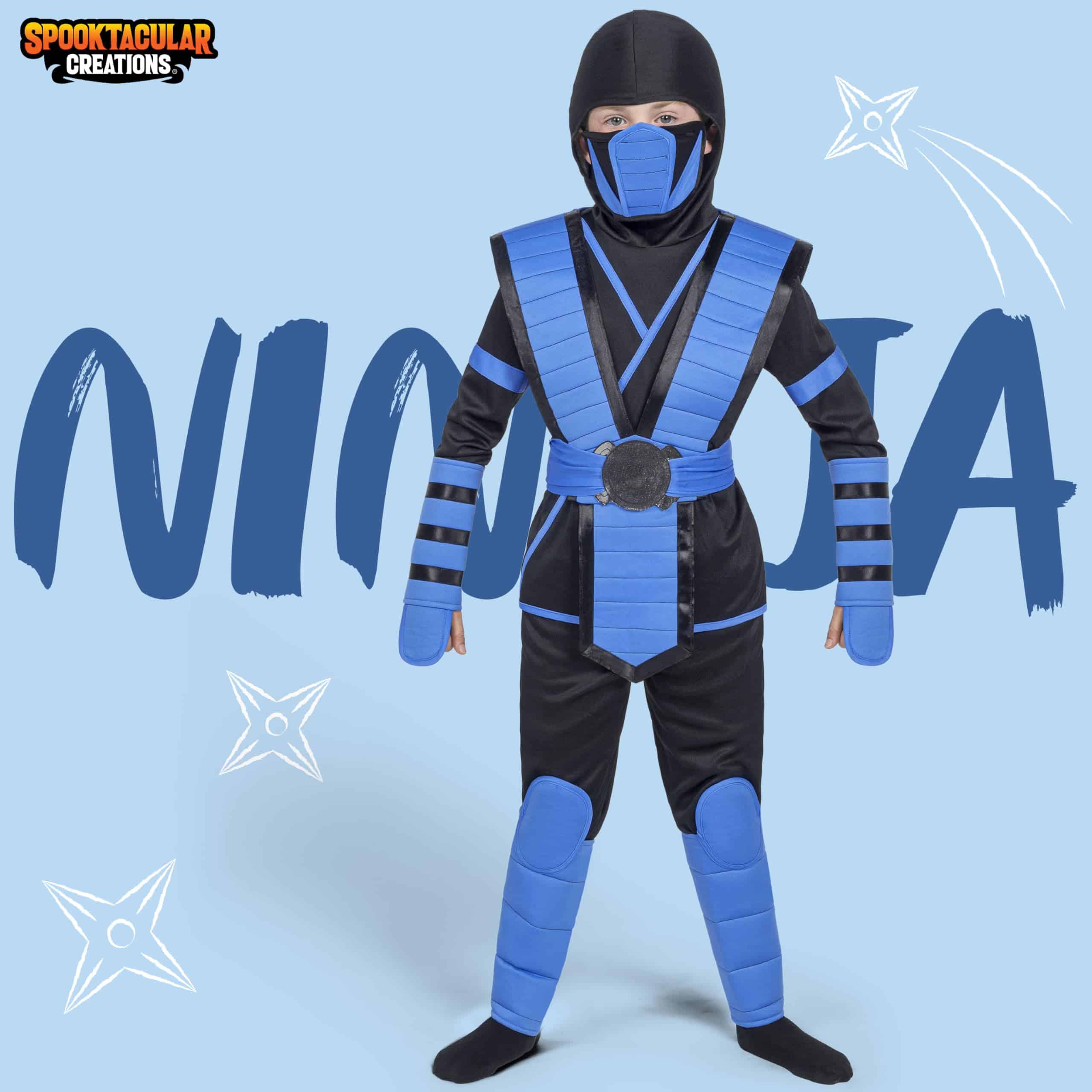 Disfraz de Ninja Azul Spooktacular Creations para Niños, Disfraz de Ninja para Niños Pequeños Halloween, Juego de Rol