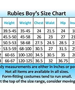 3. IMPORTANTE: Los disfraces tienen tallas diferentes a la ropa normal, utiliza la imagen de la Tabla de Tallas de Niños de Rubie�s, no elijas la talla basándote en la edad del niño o su talla de ropa.