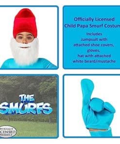 1. Disfraz oficial para niños, busca la marca comercial de Los Pitufos en la etiqueta y el empaque para asegurarte de haber recibido un artículo auténtico probado por seguridad.