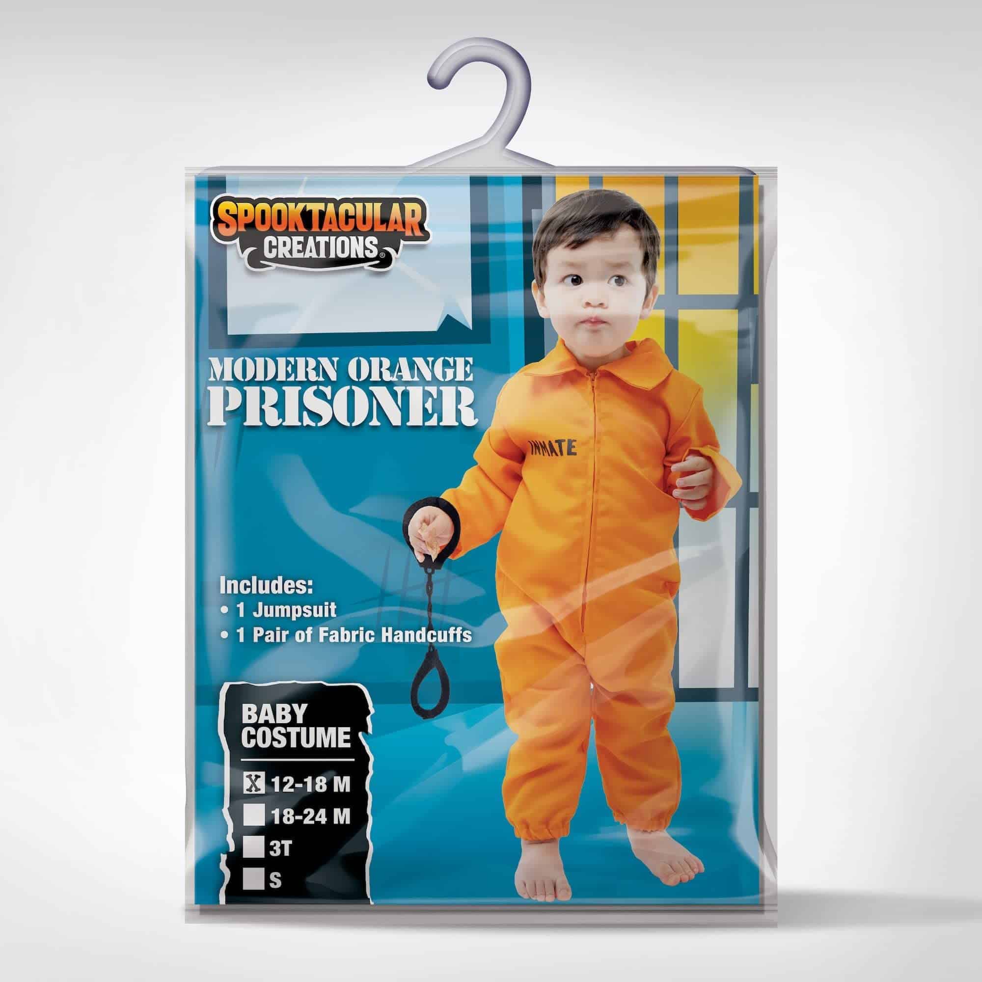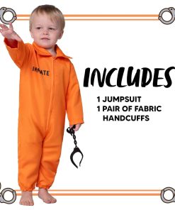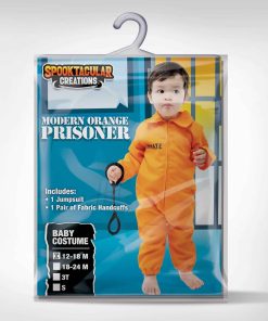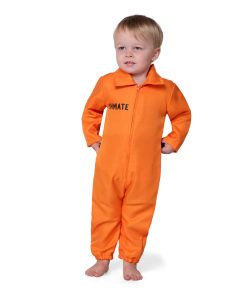 PAQUETE DE VALOR SUPERIOR. Nuestro disfraz de Preso naranja para niños tiene todo lo necesario para transformar a tu hijo en un pájaro de la cárcel (no es necesario ninguna sentencia de prisión). Añade un par de esposas al conjunto si realmente quieres enfatizar el concepto de prisión. Presentamos el Conjunto Deluxe de Disfraz de Preso Moderno Naranja de Espeluznante para Bebés y Niños. Incluye un mono de Preso naranja y un par de esposas de tela.