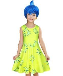 4. Detalles de Diseño – El disfraz de cosplay de alegría verde amarillento para niños está basado en los personajes de la popular película animada. Cuello redondo, sin mangas, con un patrón impreso en 3D vívido y colores brillantes, puedes sumergirte en los encantos del personaje.