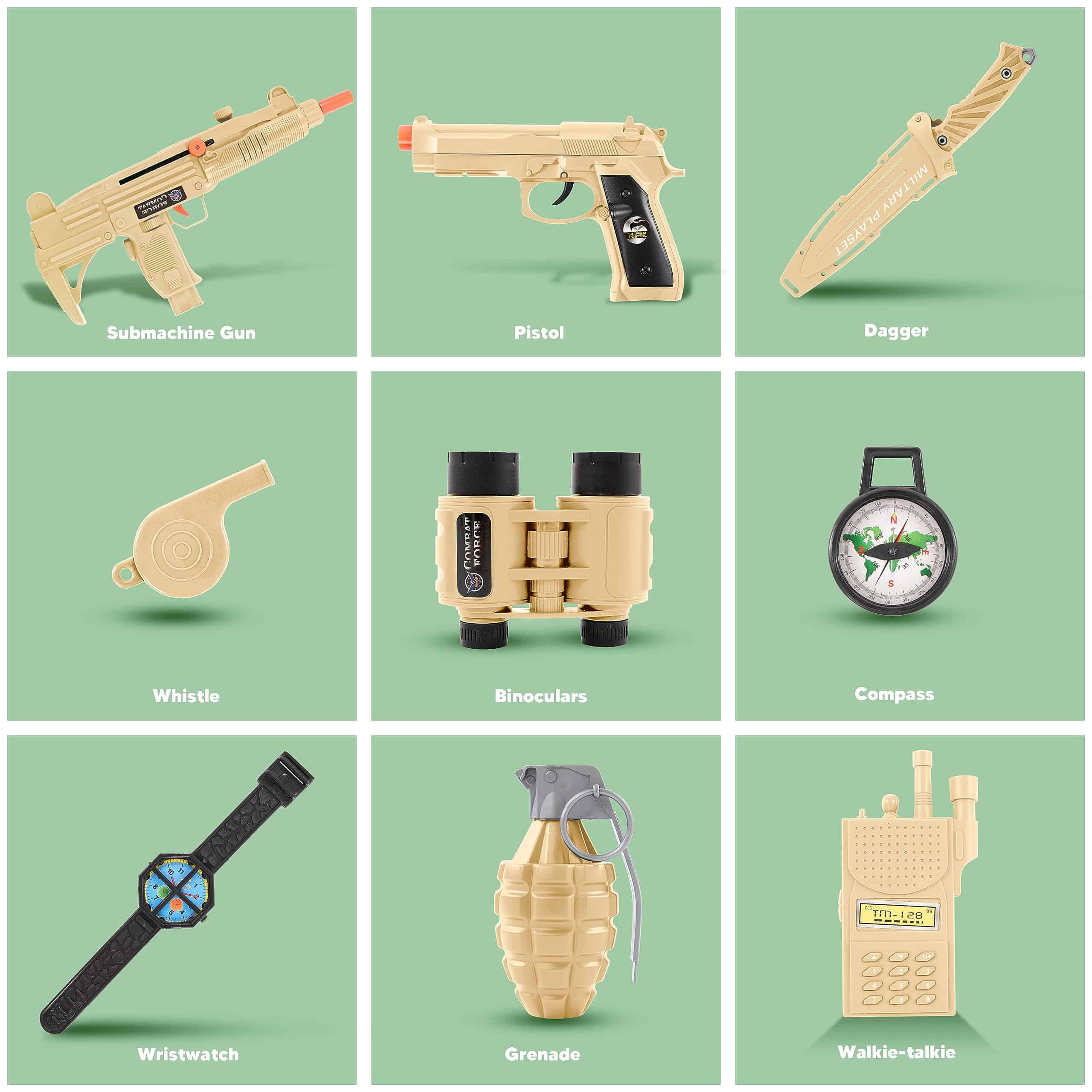 Ocasiones Especiales: Ideal para disfraces de Halloween, fiestas de disfraces, eventos nocturnos de Halloween, fiestas de cosplay, fiestas temáticas, actuaciones en el escenario y escenarios de juegos de roles. Permita que su hijo marche hacia la acción y experimente la emoción de estar en el ejército con nuestro kit de disfraz. El diseño detallado y los accesorios de juguete incluidos mejorarán su juego imaginativo y los harán sentir como un verdadero soldado