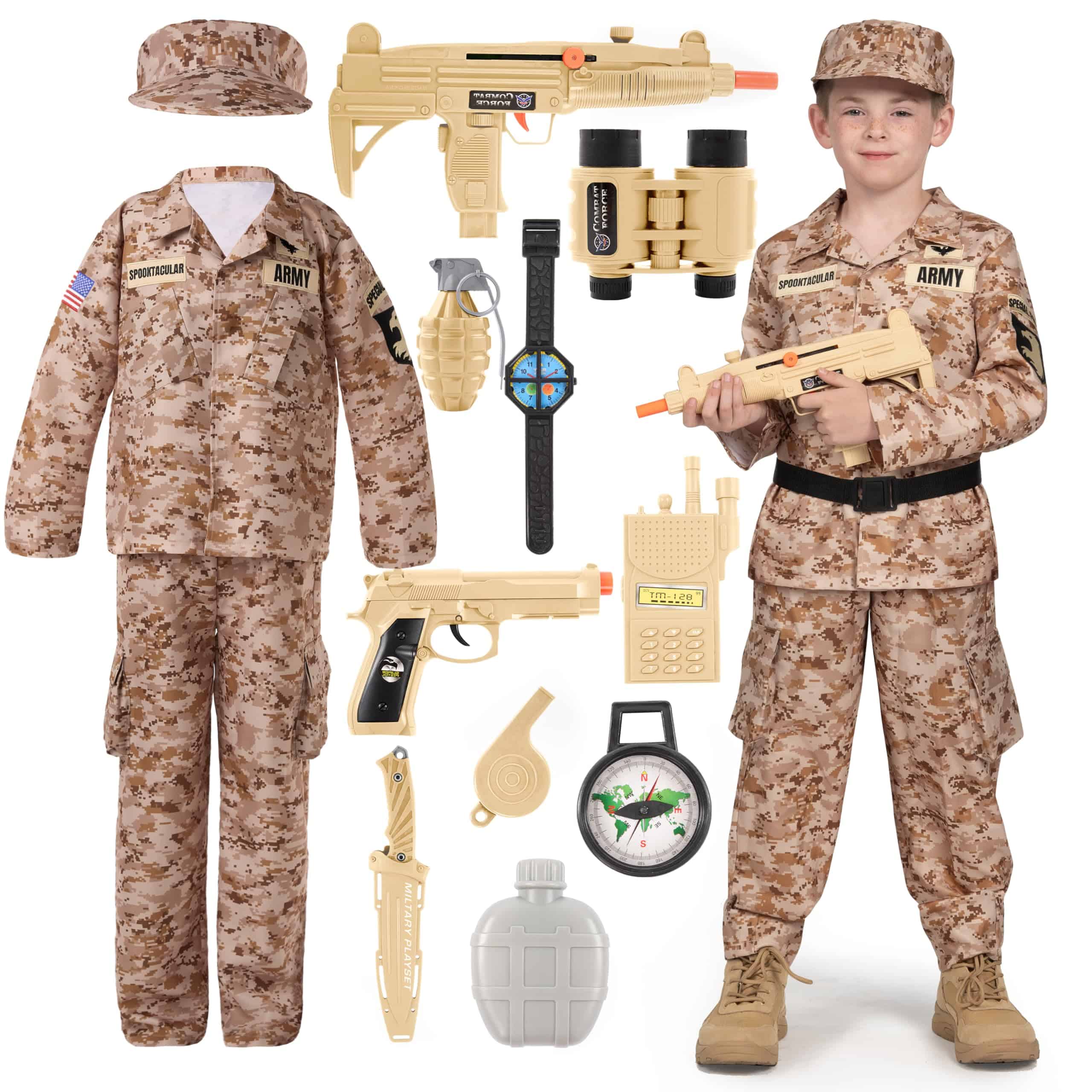 Disfraz Militar para Niños de Spooktacular Creations, Disfraz de Soldado del Ejército, Disfraz de Camuflaje con Accesorios de Juguete para Niños, Niños Disfraz de Halloween y fiestas de disfraces