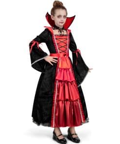 Calidad: Fabricado con 100% poliéster y materiales aprobados en pruebas de seguridad, este vestido de vampira gótico brinda durabilidad, comodidad y un aspecto encantador, asegurando una experiencia segura y placentera para tu hijo
