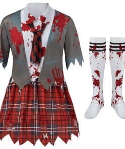 ¡PACK DE VALOR SUPERIOR: Nuestro Disfraz de Zombie Escolar incluye una Camisa, una Corbata, una Chaqueta, una Falda y un Par de Calcetines, que tienen salpicaduras de sangre roja por todo el dobladillo irregular, y mangas estilo pompones. Si tu pareja quiere ser el centro de atención en Halloween, disfrazarse como un zombie de una película de horror hará que sus amigos griten de miedo.