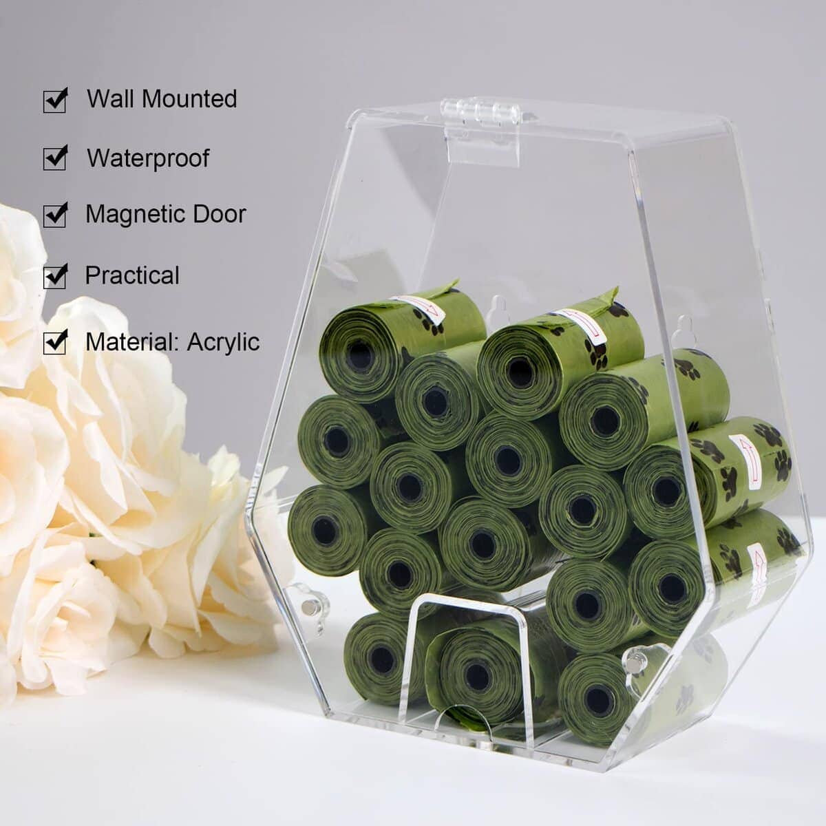 1. Dispensador de bolsas para mascotas montado en la pared: Buena opción para el hogar, guarderías caninas, peluquerías, consultorios veterinarios.