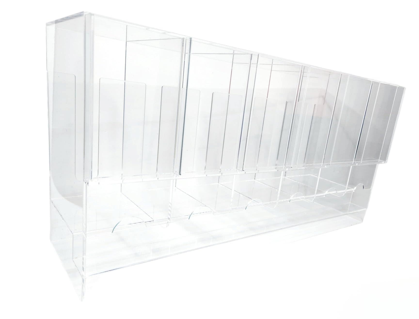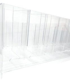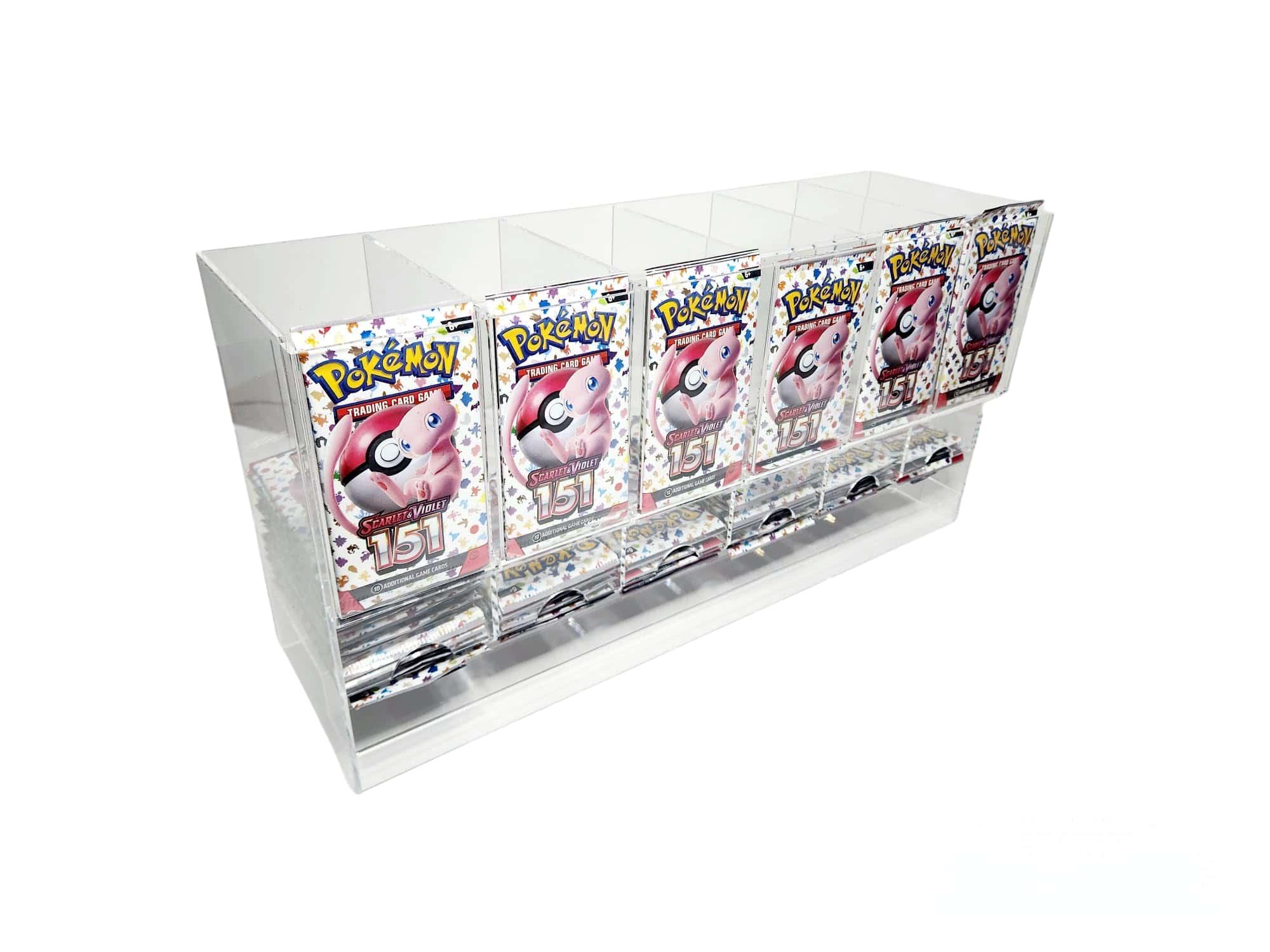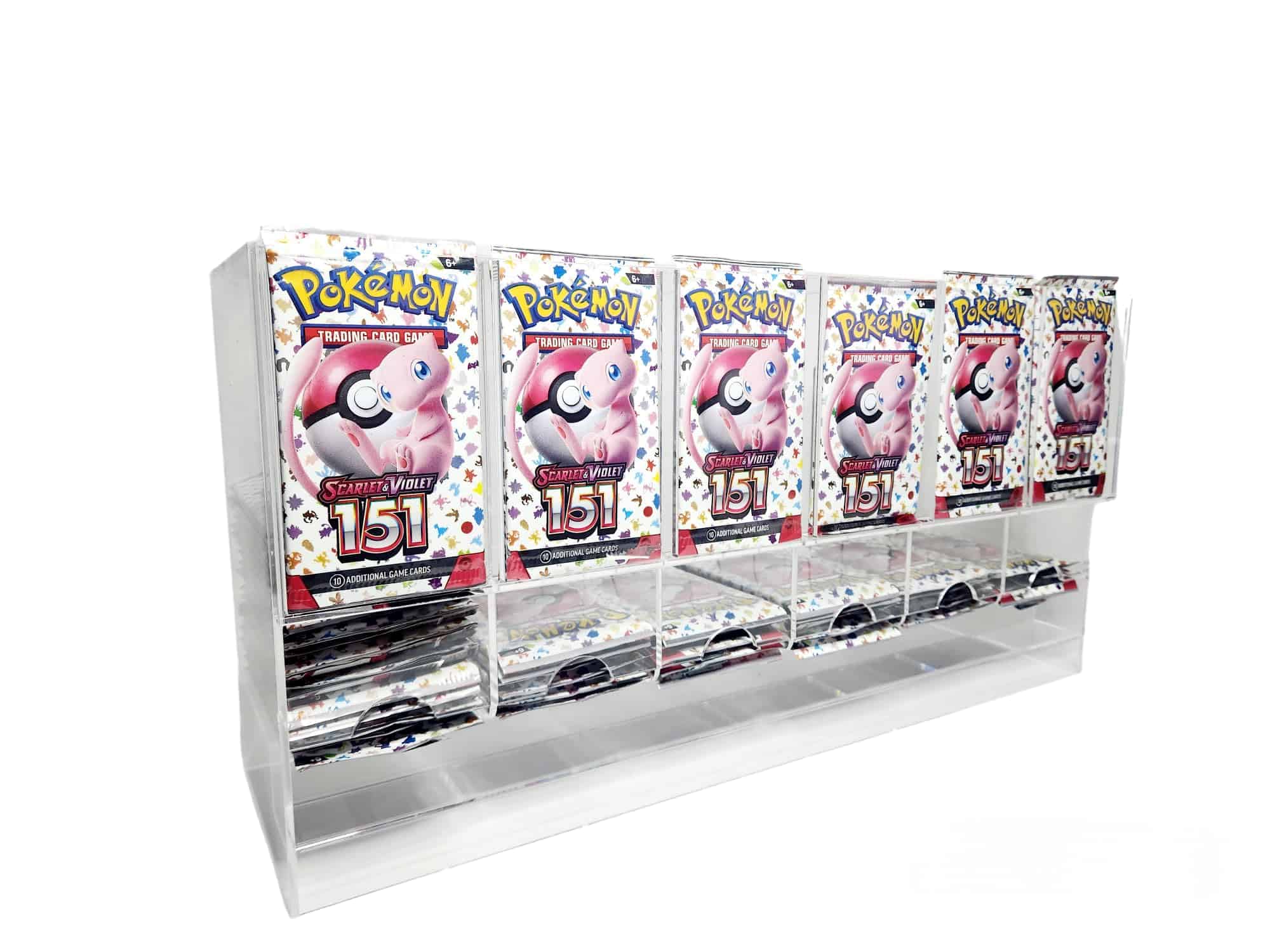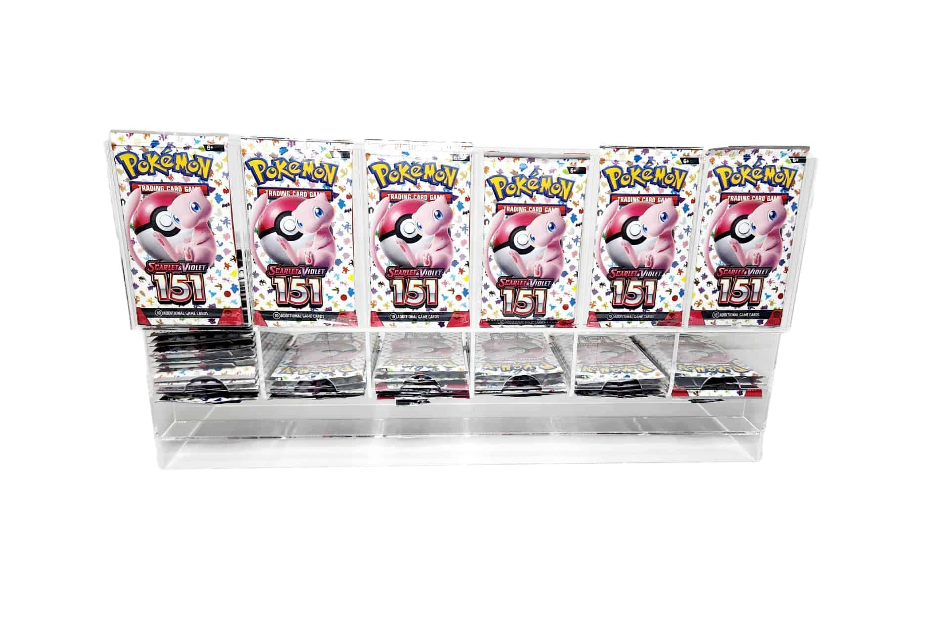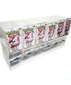 Dispensador de paquetes de mejora de 6 ranuras de acrílico fabricado por Safeguard TCG Solutions. Nuestro nuevo diseño es una gran mejora que le permite meter los dedos DEBAJO de los paquetes al retirarlos. Dispensador de paquetes de mejora de acrílico de 6 ranuras de Safeguard para paquetes de mejora de TCG/CCG.