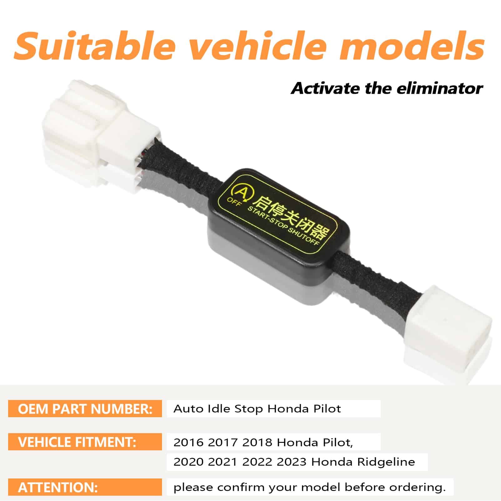 Dispositivo de desactivación/eliminación del sistema de apagado/arranque automático diseñado para evitar el funcionamiento frecuente de este sistema y proteger los componentes del motor, la batería y promover su longevidad y fiabilidad. Compatible con los modelos Pilot 2016-2018 y Ridgeline 2020-2023. El paquete incluye 1 unidad del dispositivo de desactivación/eliminación. Instrucciones de instalación: Paso 1: Retire el panel central de la consola. Paso 2: Localice el arnés del botón de arranque/parada. Paso 3: Conecte el protector. Paso 4: Restaure el panel y pruebe el funcionamiento del vehículo para asegurarse de que la función de apagado/arranque automático ha sido desactivada con éxito (si se muestra A OFF en el panel de instrumentos, la desactivación ha sido exitosa).