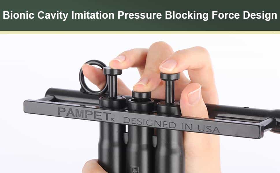 El entrenador de trompeta TruTra PAMPET simula la digitación real de la trompeta. La cámara biónica adopta un diseño que simula la presión y la resistencia, lo que hace que la presión y la resistencia al practicar el instrumento sean exactamente iguales. La válvula de presión de aire te permite simular diferentes tipos de presión como jazz, clásico, entre otros.