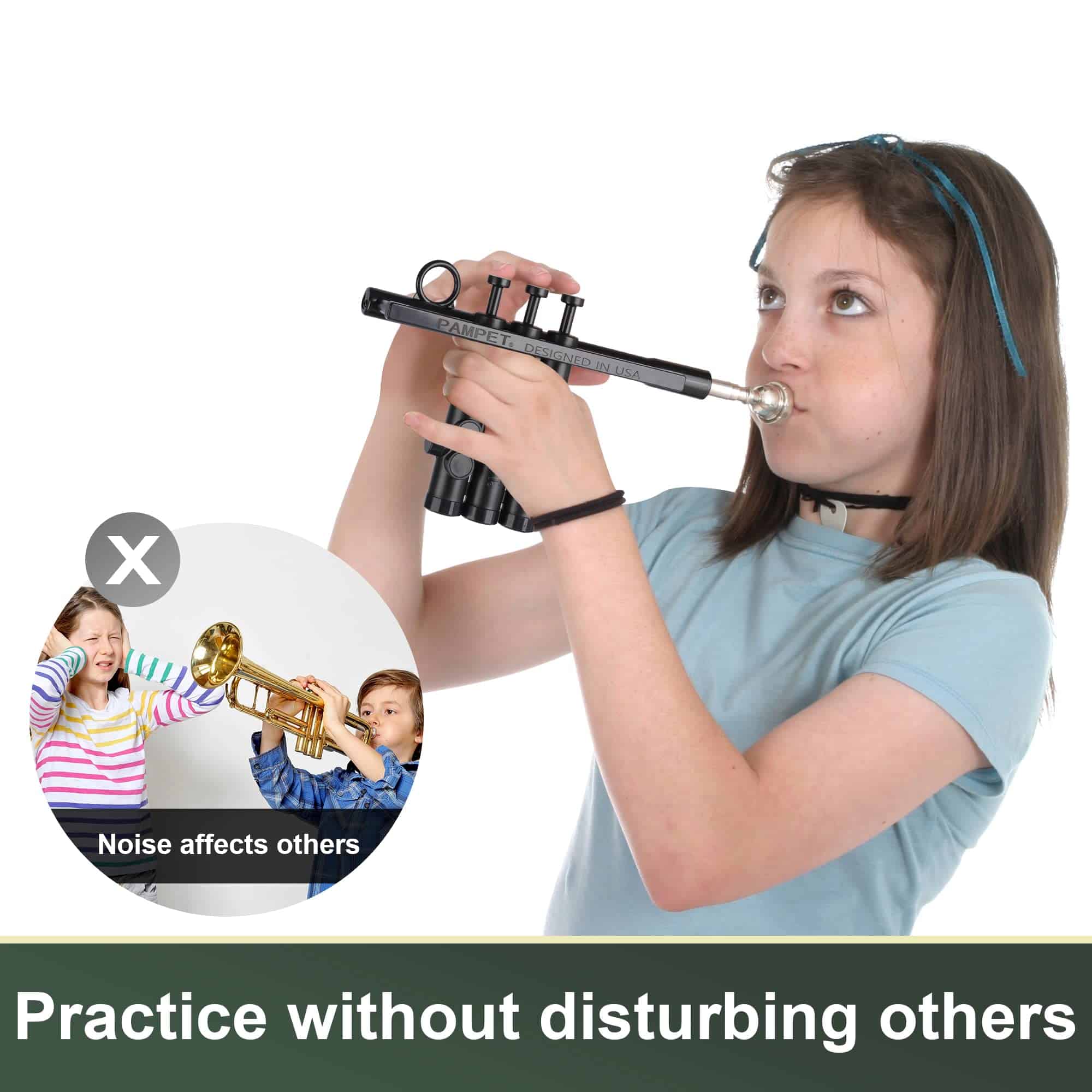 Además, el pequeño entrenador de trompeta PAMPET actúa como una válvula de reducción de presión. ¡Este es el sonido que estás buscando para ayudarte a calentar! ¡Un experto en entrenamiento de trompeta a tu lado!