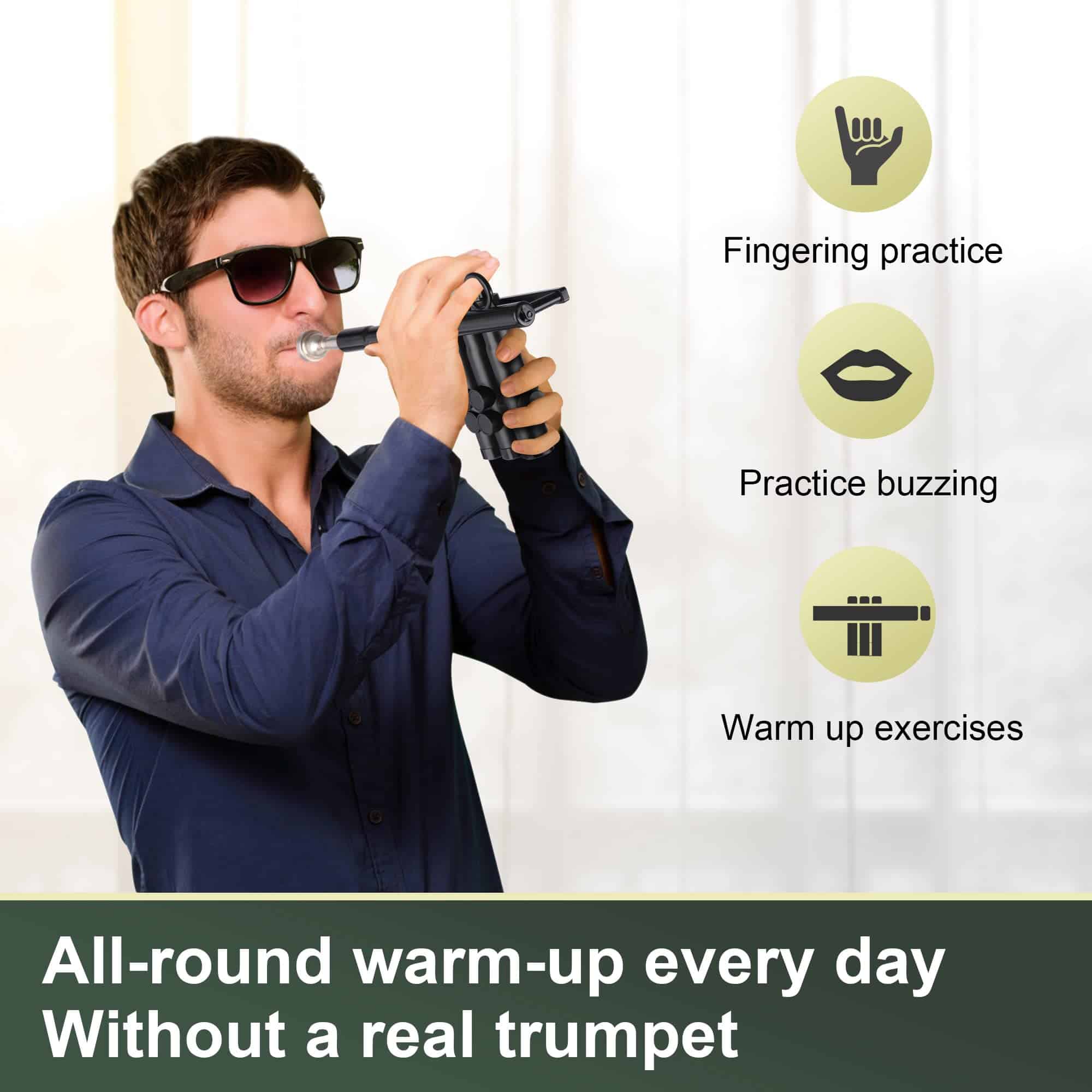 Cómo funciona: los músicos de viento metal suelen entrenar individualmente con sus trompetas durante el calentamiento. Sin embargo, al practicar con este dispositivo, obtienen un sonido satisfactorio. Una vez instalado, el sonido cambia, ya que la resistencia y presión diferente del instrumento causan vibraciones diferentes y cambios en el sonido producido.
