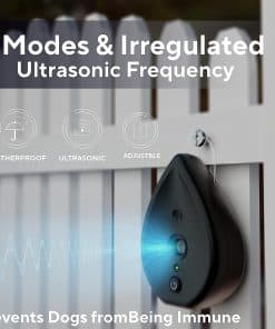 1. Olvídate de tus pesadillas diarias: Mientras algunos vecinos simplemente no les importa el ladrido de sus perros, otros como tú, no están seguros de qué hacer. Así que en lugar de sufrir, ¿por qué no probar el Dispositivo Anti-Ladrido Ultrasónico? Es el dispositivo no portátil que hace que los perros sean más soportables al detener sus ladridos. 2. Rango efectivo de hasta 75 pies: Nuestros dispositivos de control de ladridos de perros para interiores y exteriores fueron diseñados de manera conveniente con múltiples ajustes; el micrófono multidireccional capta los ladridos de perros en cualquier dirección. Modo 1: rango bajo (hasta 25 pies); modo 2: rango medio (hasta 50 pies); modo 3: rango alto (disuade a todos los perros afuera a una distancia de hasta 75 pies). 3. Seguro y amigable con los animales y las personas: Este silenciador ultrasónico de ladridos de perros ha sido probado y comprobado para ser completamente inofensivo para los seres humanos, animales y plantas. Debido a su frecuencia sonora precisa, es posible que ni siquiera lo escuches. Tomará hasta 2 semanas para que el perro aprenda qué significa el ruido penetrante. 4. Es tan fácil de usar – Silbato para detener los ladridos. Este pequeño dispositivo disuasivo para perros es muy fácil de montar en una pared, colgar en un árbol o colocar en un poste de cercado cerca de tu casa; Además, es extremadamente fácil de configurar y comenzar a usar; lo que lo convierte en el mejor entrenamiento electrónico para tu cachorro. 5. Duradero y resistente a la intemperie – Construido con el más alto nivel de calidad para garantizar un uso a largo plazo; Es resistente al agua y duradero, por lo que puedes colgarlo al aire libre en cualquier clima y usa 1 batería de 9V (baterías incluidas), haciendo que sea un excelente control de ladridos al aire libre para perros. Así que ¿por qué no probarlo ahora? Te encantará el silencio y tu perro amará no ser regañado.